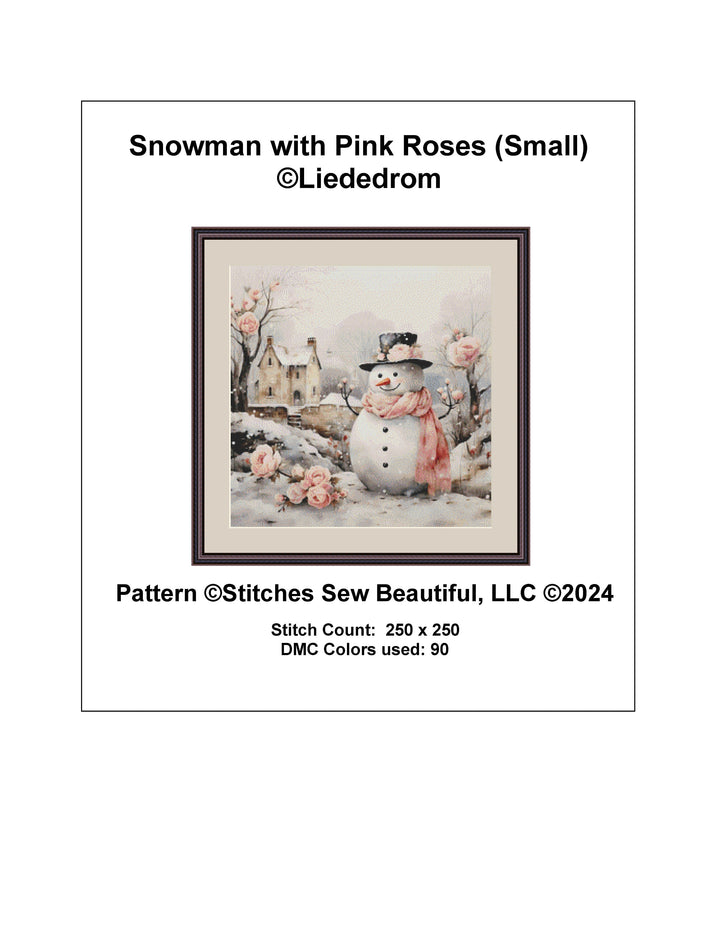 Snowman with Pink Roses (Small) cross stitch pattern by Liededrom