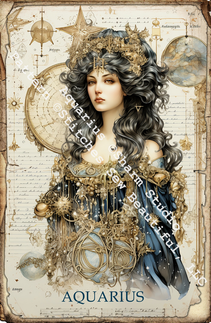 Zodiac - Aquarius 1 counted cross stitch pattern by Sharm Studio