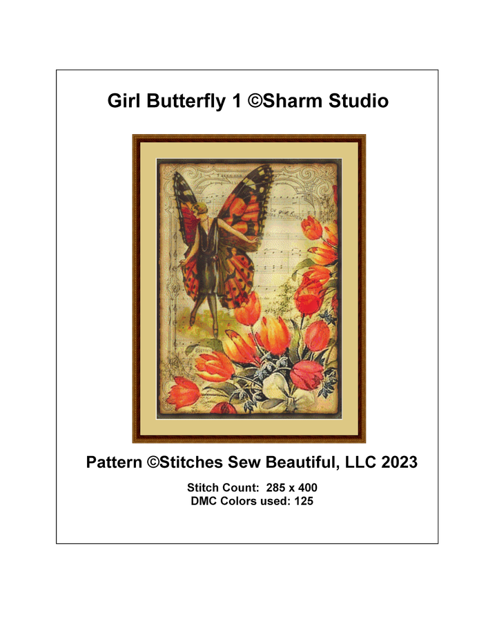 Girl Butterfly 1 counted cross Stitch Pattern by SharmStudio