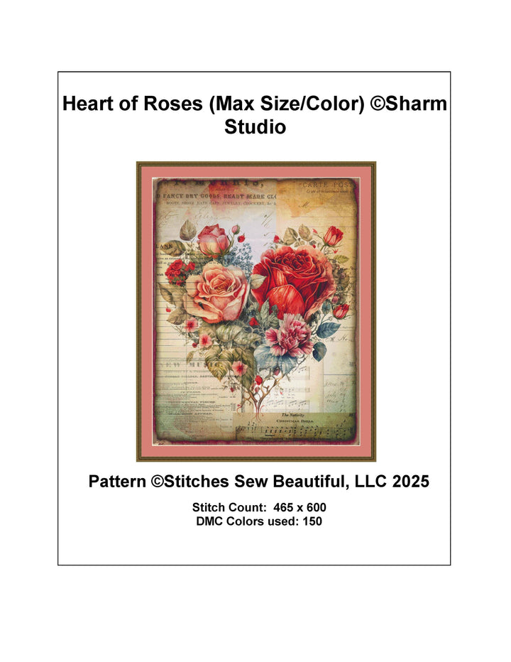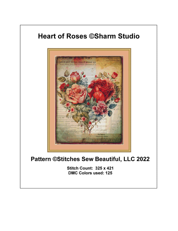 Heart of Roses (Max Size/Color) counted cross stitch pattern by Sharm Studio