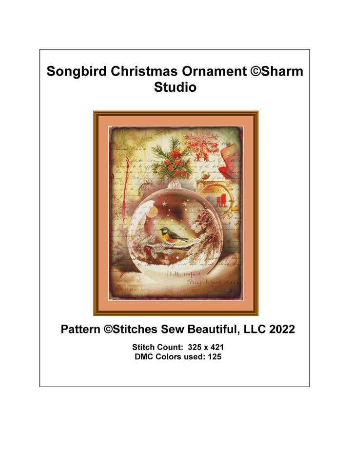 Songbird Christmas Ornament counted cross stitch pattern by SharmStudio