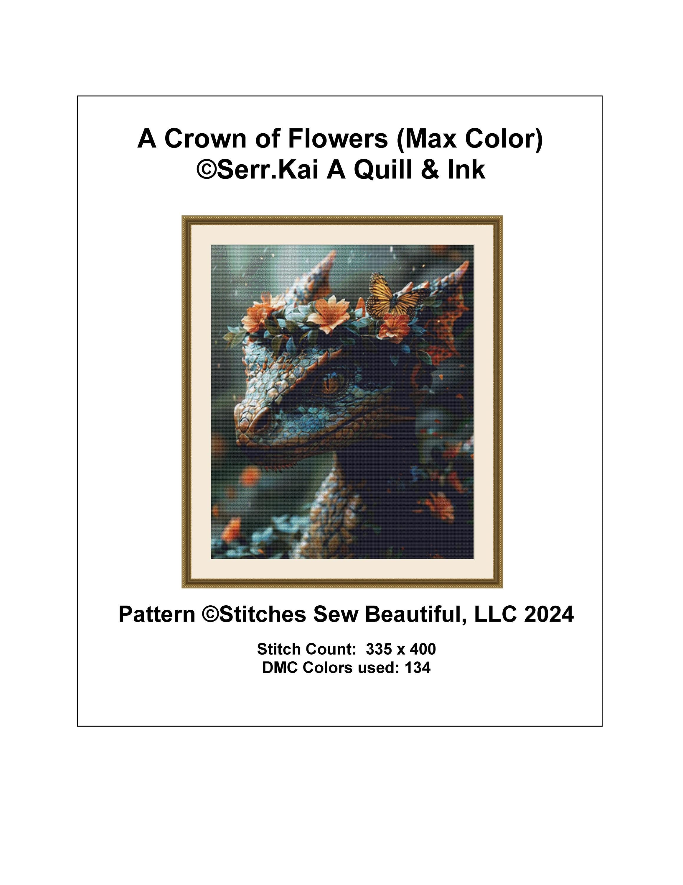 A Crown of Flowers (Max Color) counted cross stitch pattern by Serr.Kai A Quill & Ink