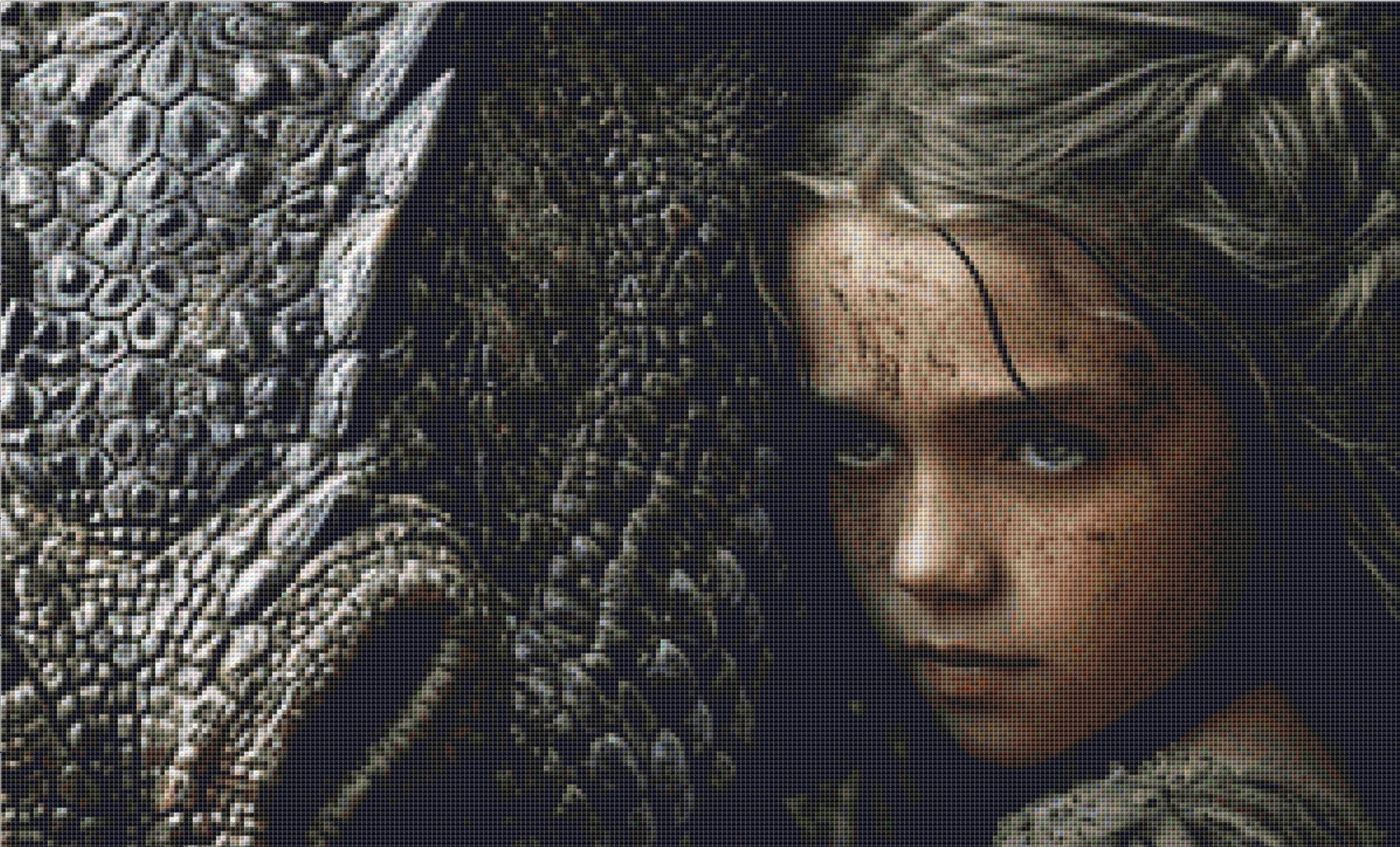 Stitch count: 300 x 400. 90 DMC colors used.
