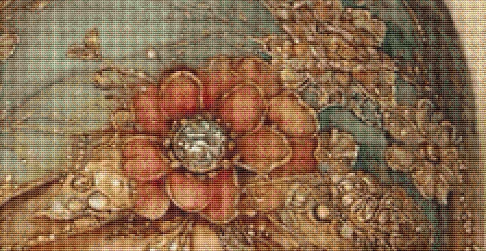 Stitch count: 300 x 400. 76 DMC colors used.