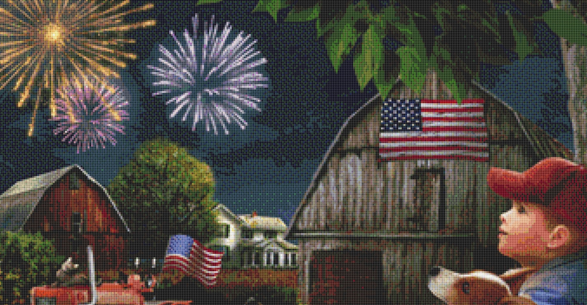 "America the Beautiful" full coverage cross stitch pattern by Tom Wood/Porterfields Fine Art Licensing.