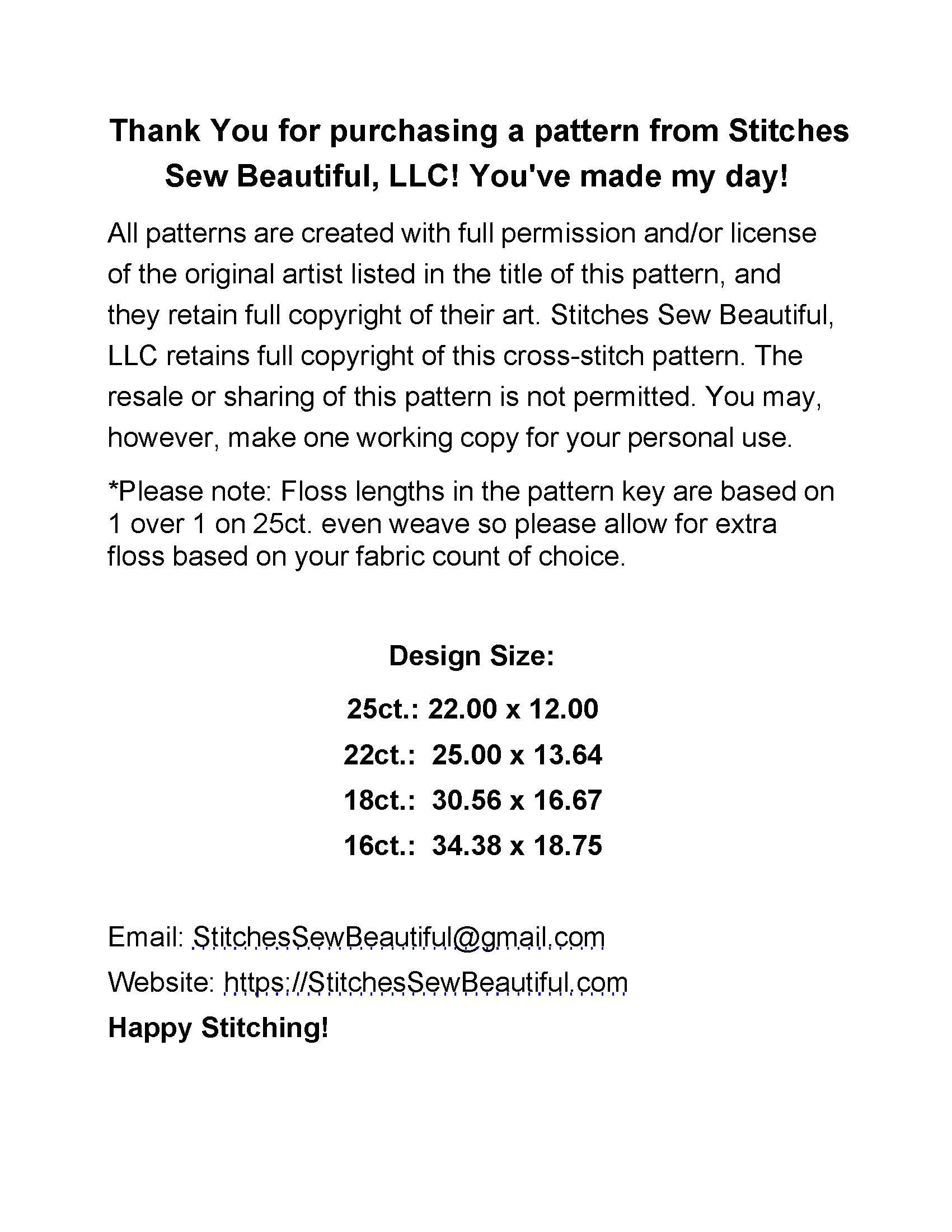 Patterns created with full license and/or permission of the original artist.