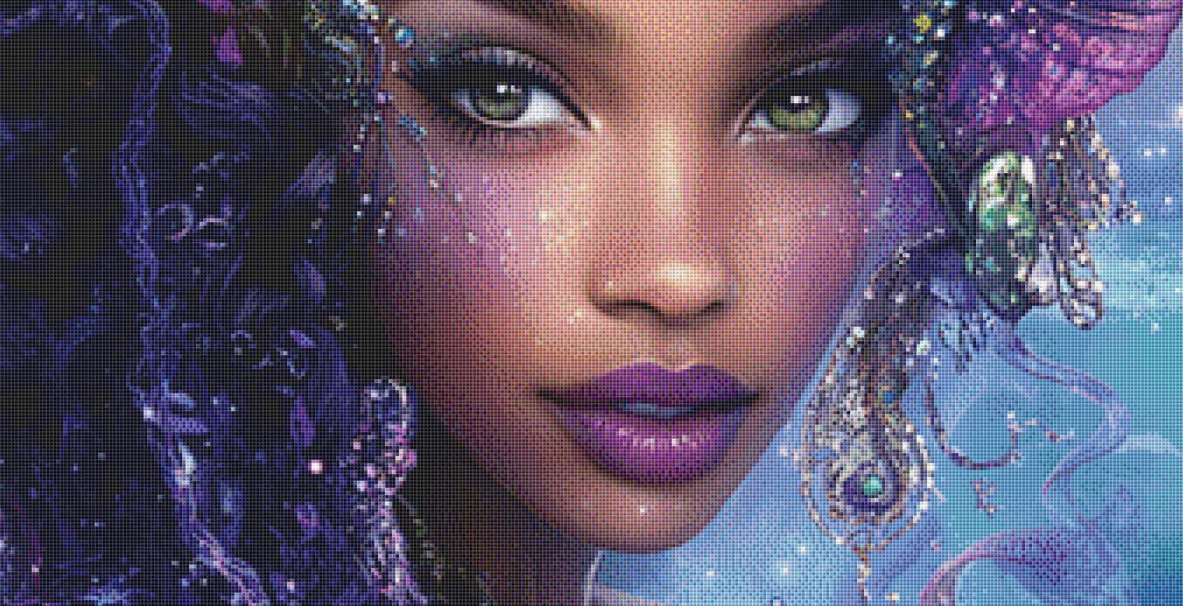 "Beautiful Sea Lady" full coverage counted cross stitch pattern.