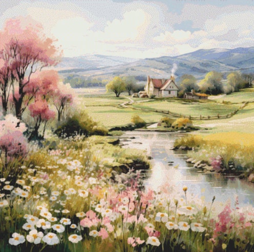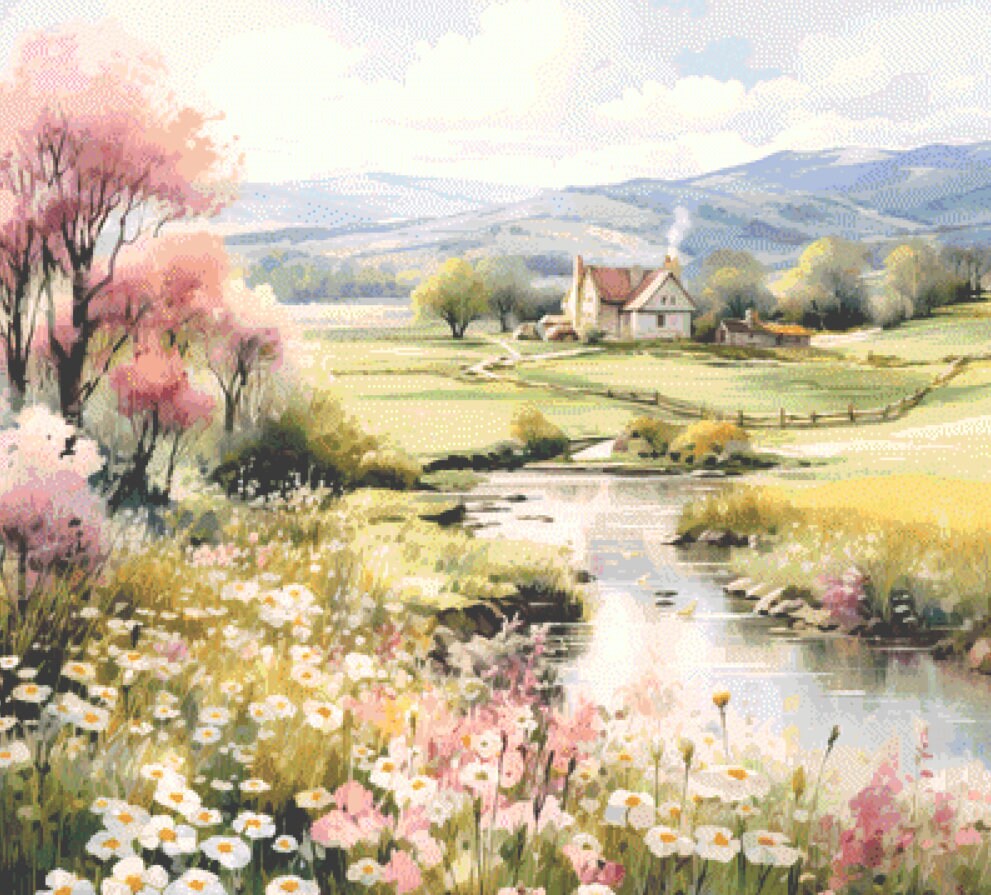 "Blissful Solitude" full coverage counted cross stitch pattern.