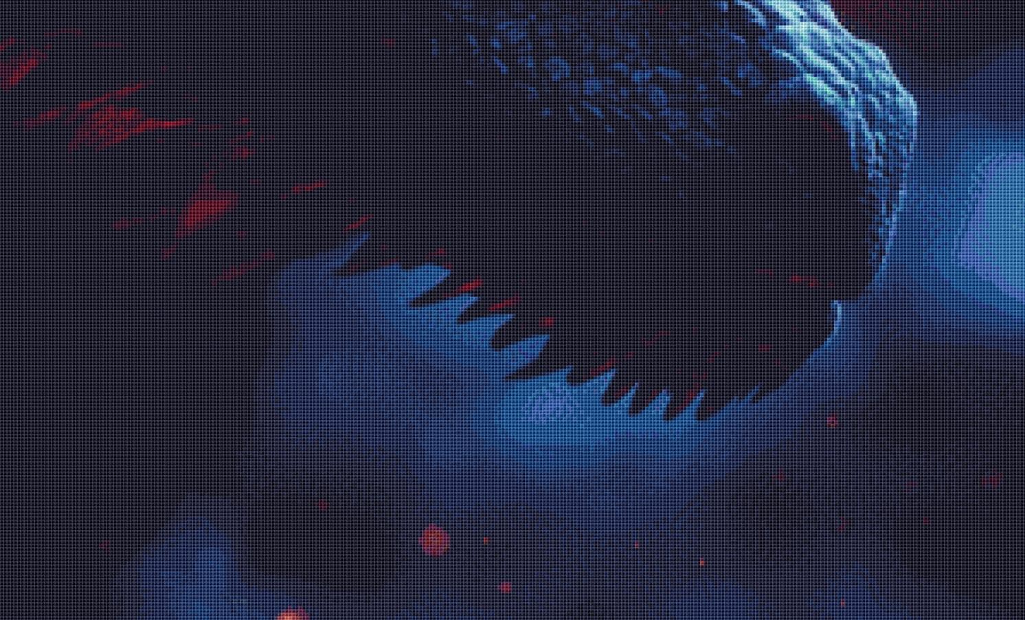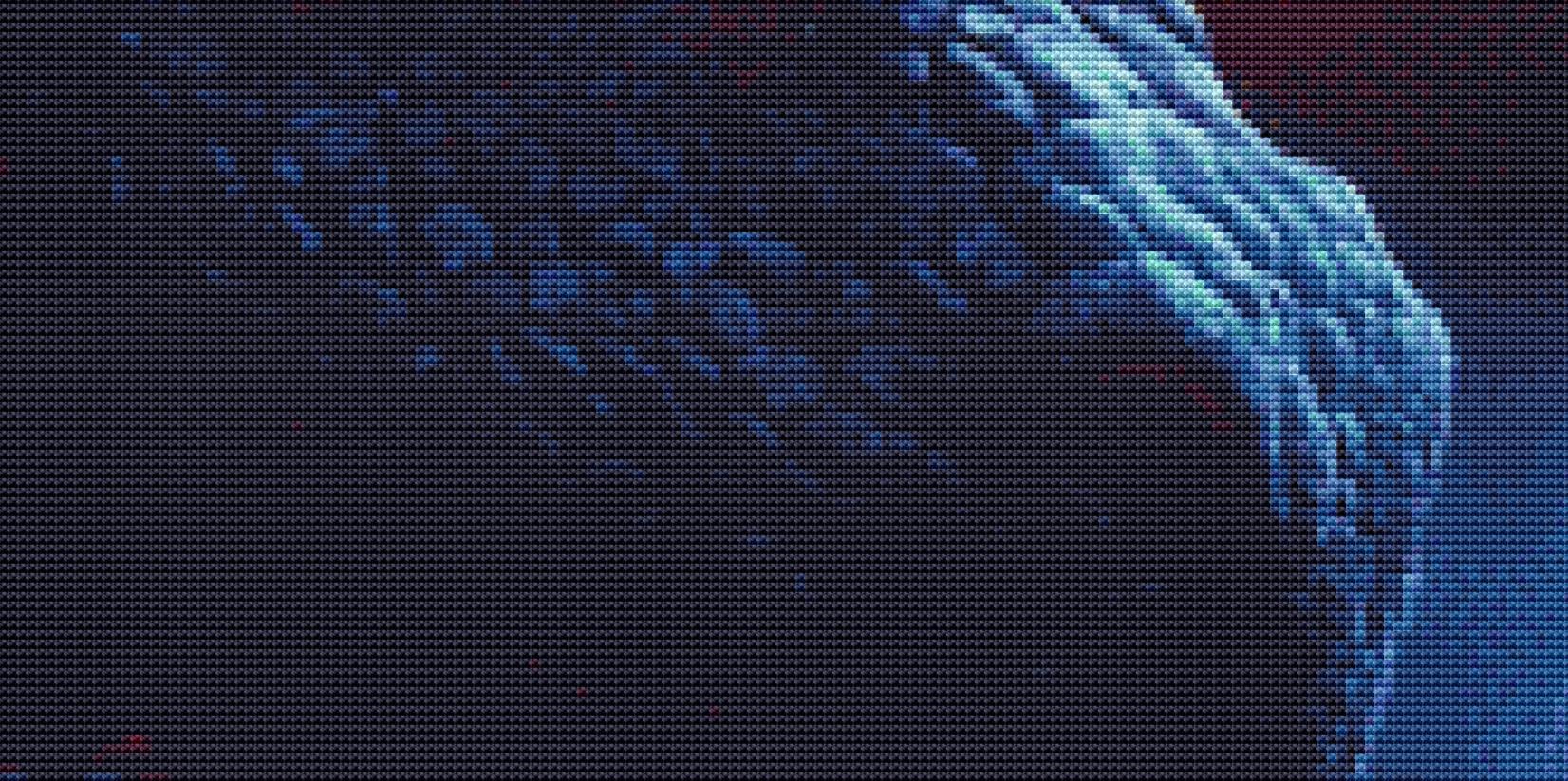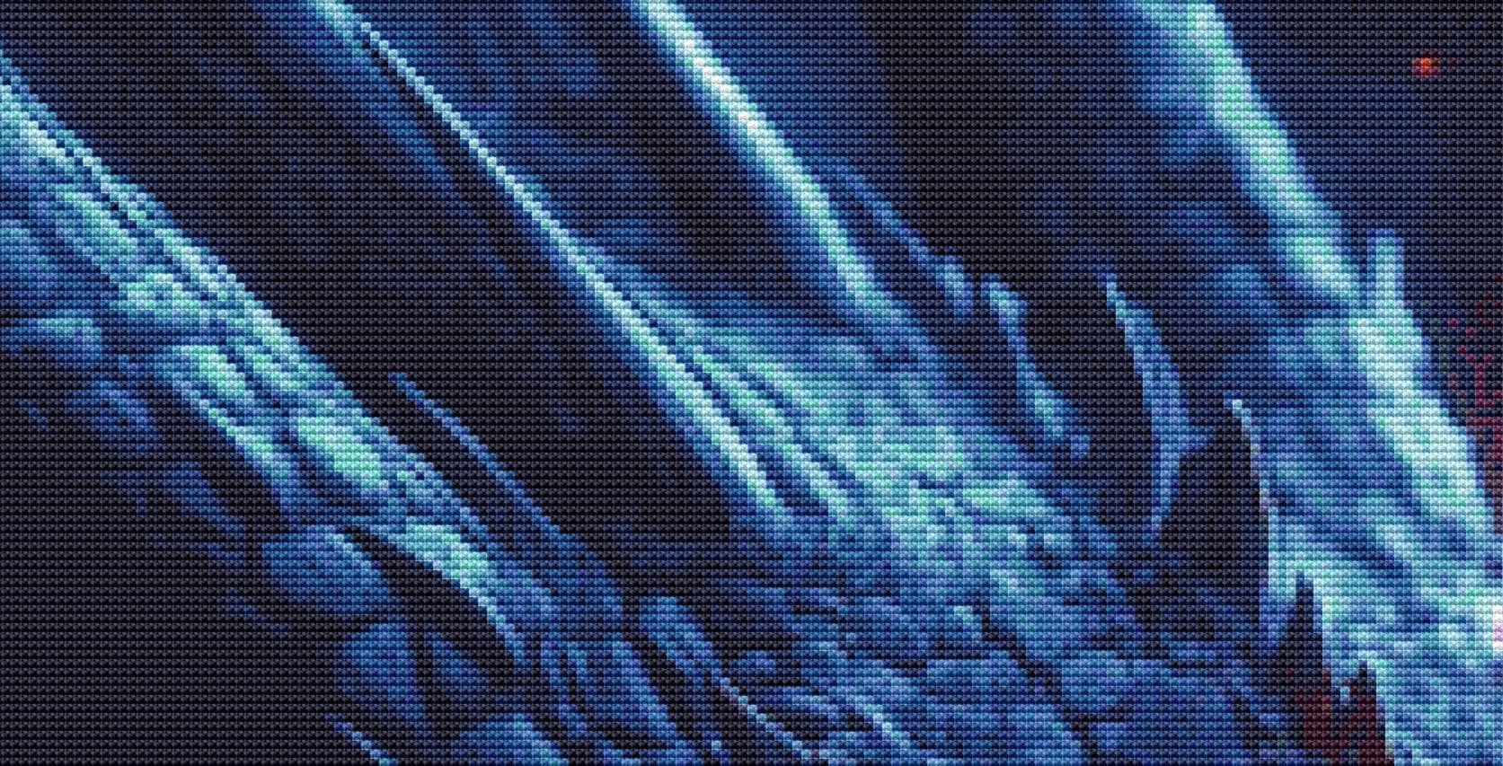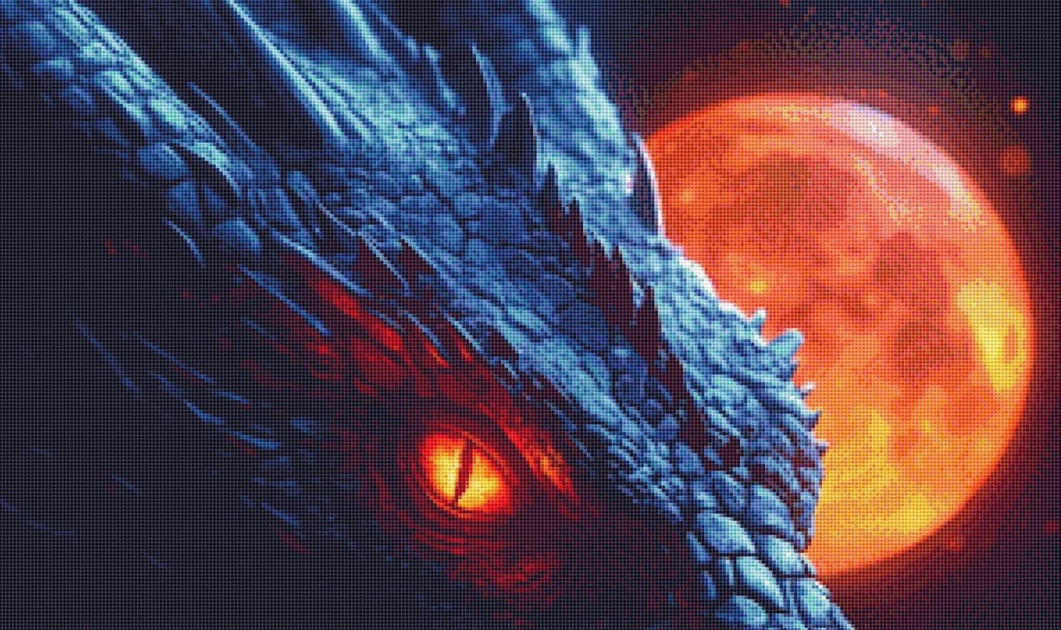 "Blood Moon Guardian" full coverage counted cross stitch pattern.