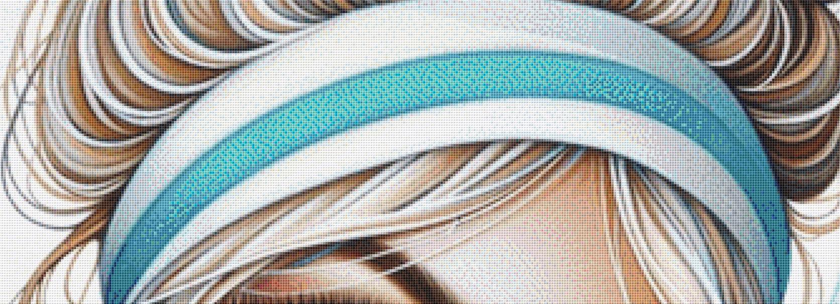 "Blue Eyes" full coverage counted cross stitch pattern.
