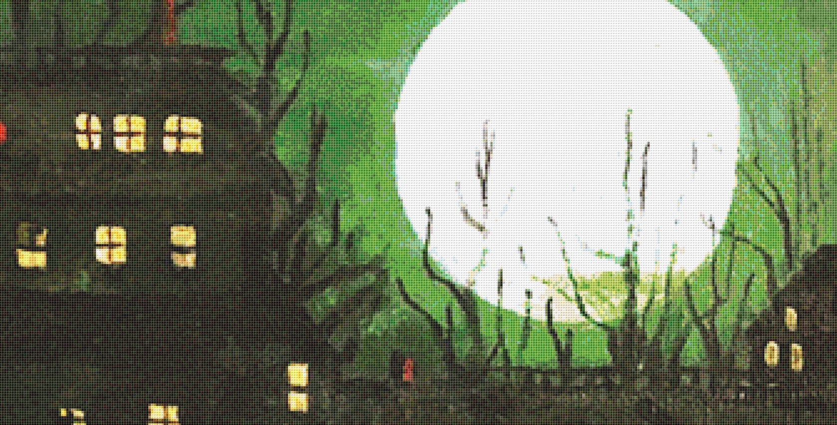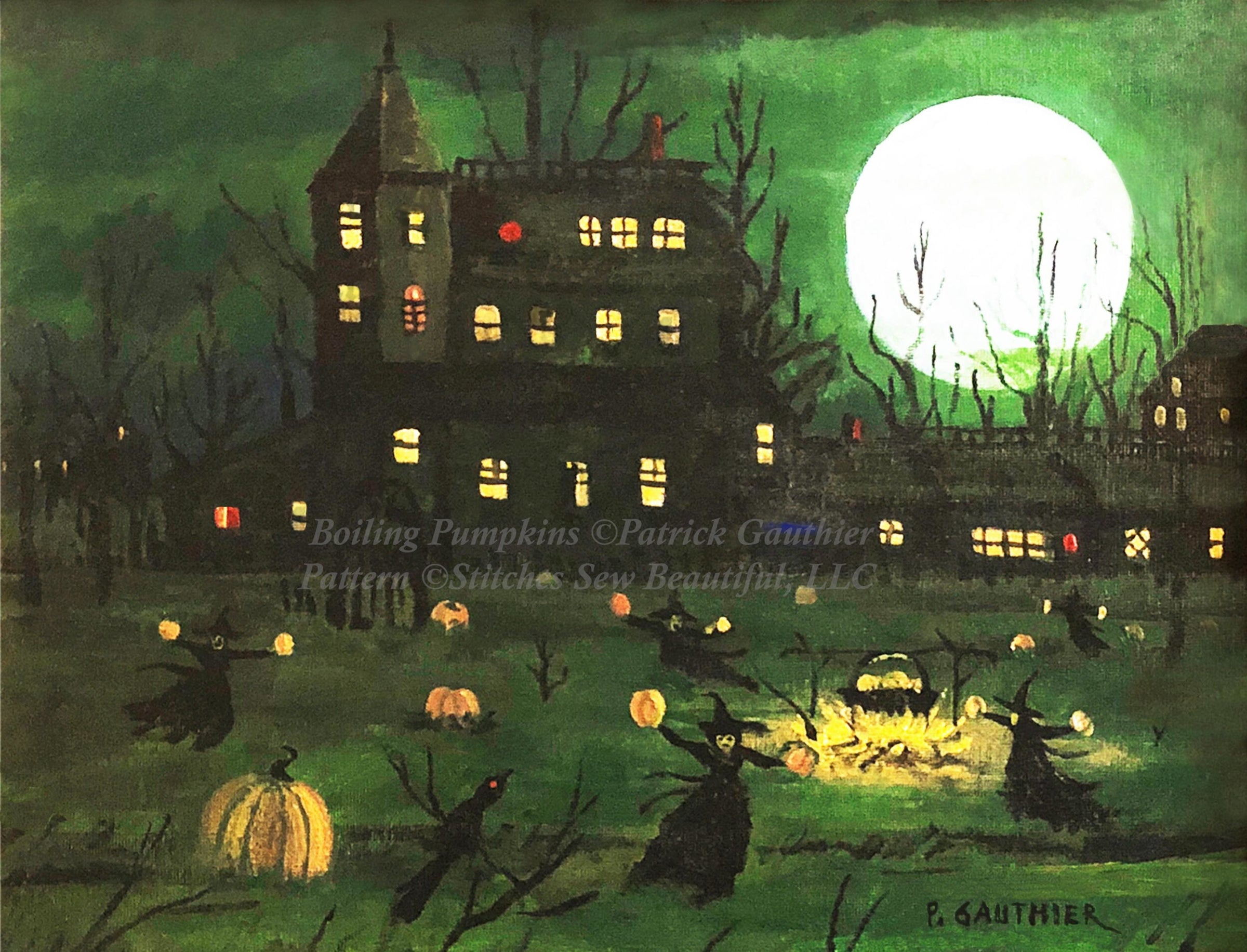 "Boiling Pumpkins" (Max Size/Color) full coverage counted cross stitch pattern.