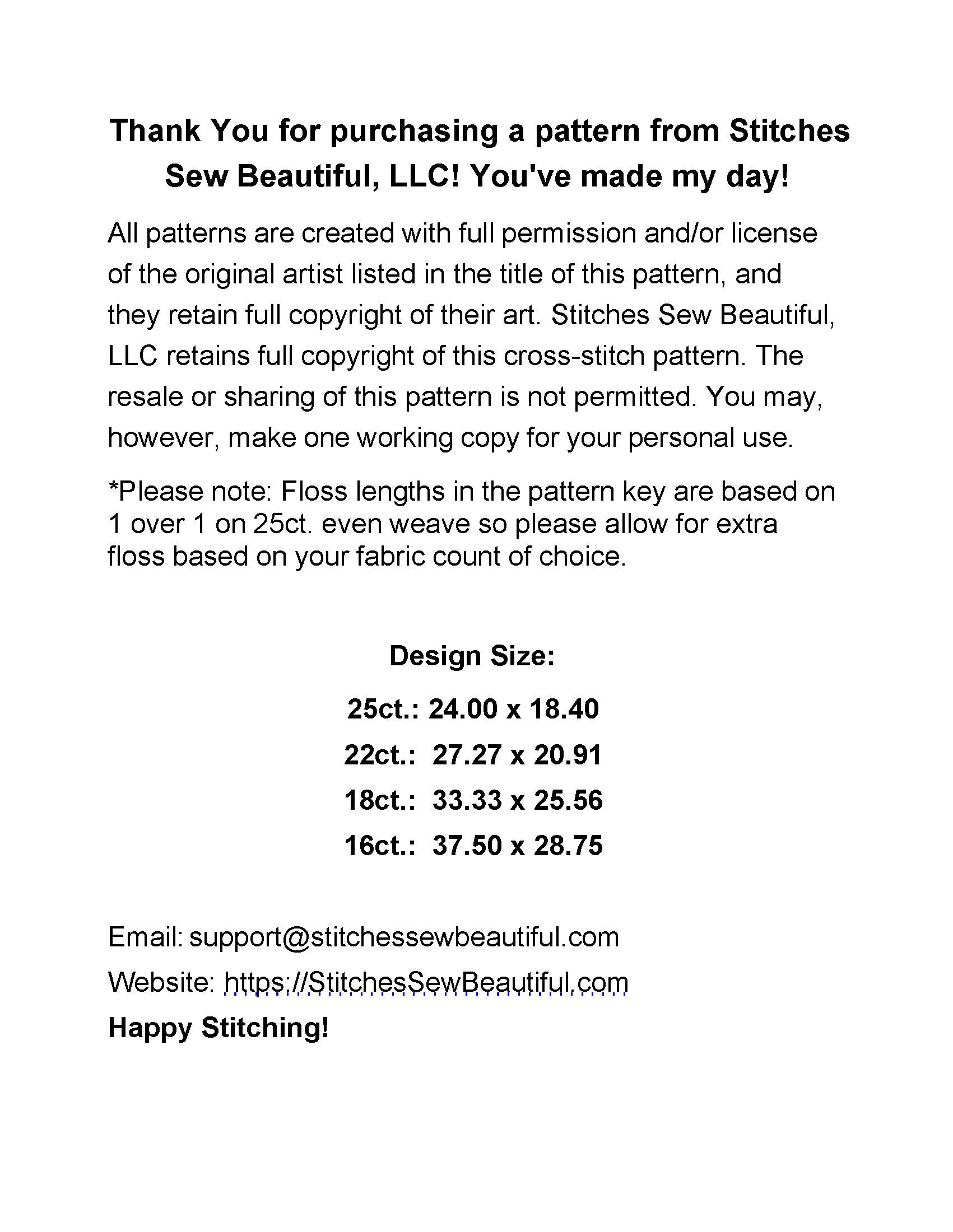 Patterns created with full license and/or permission of the original artist.