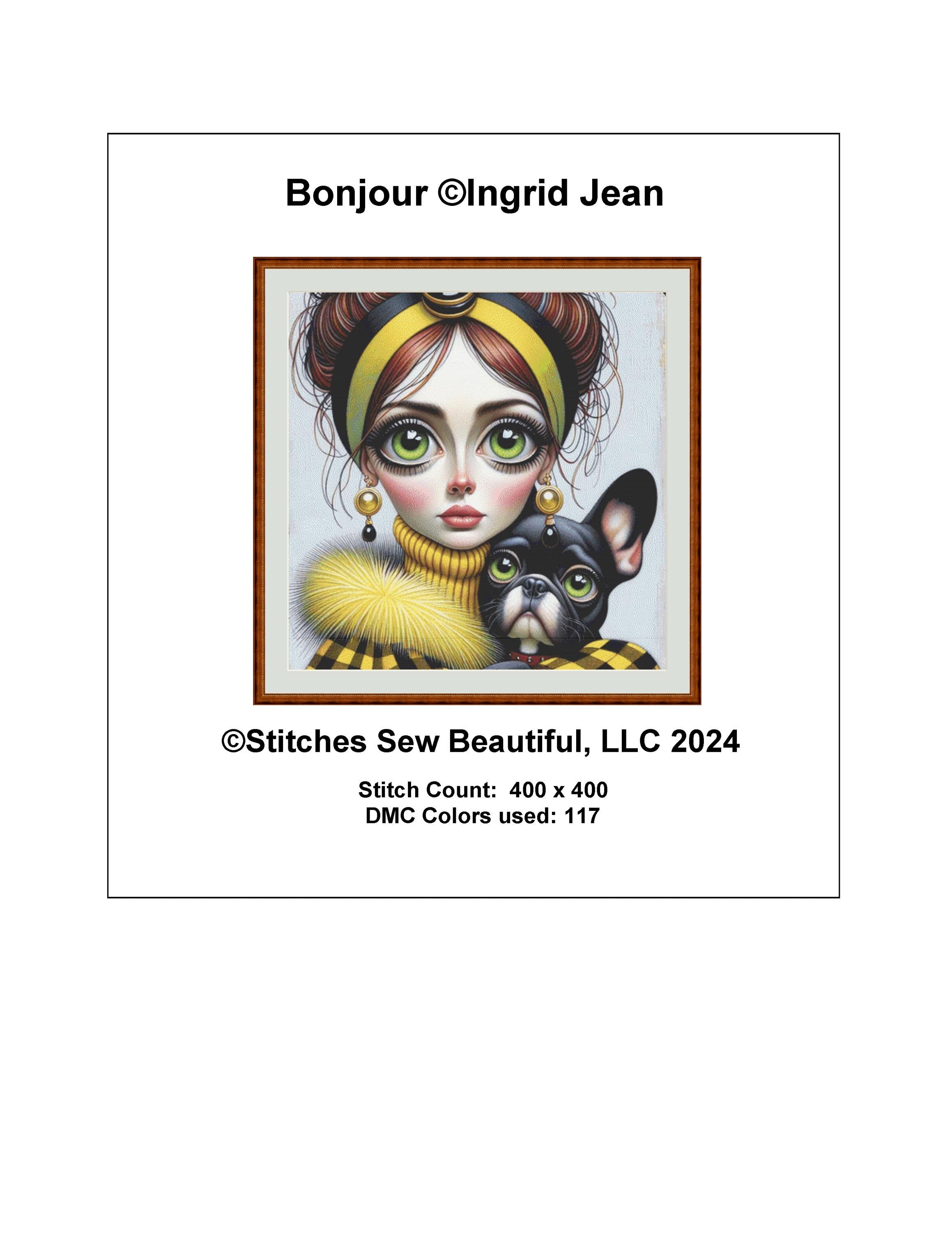 Bonjour counted cross stitch pattern by Ingrid Jean