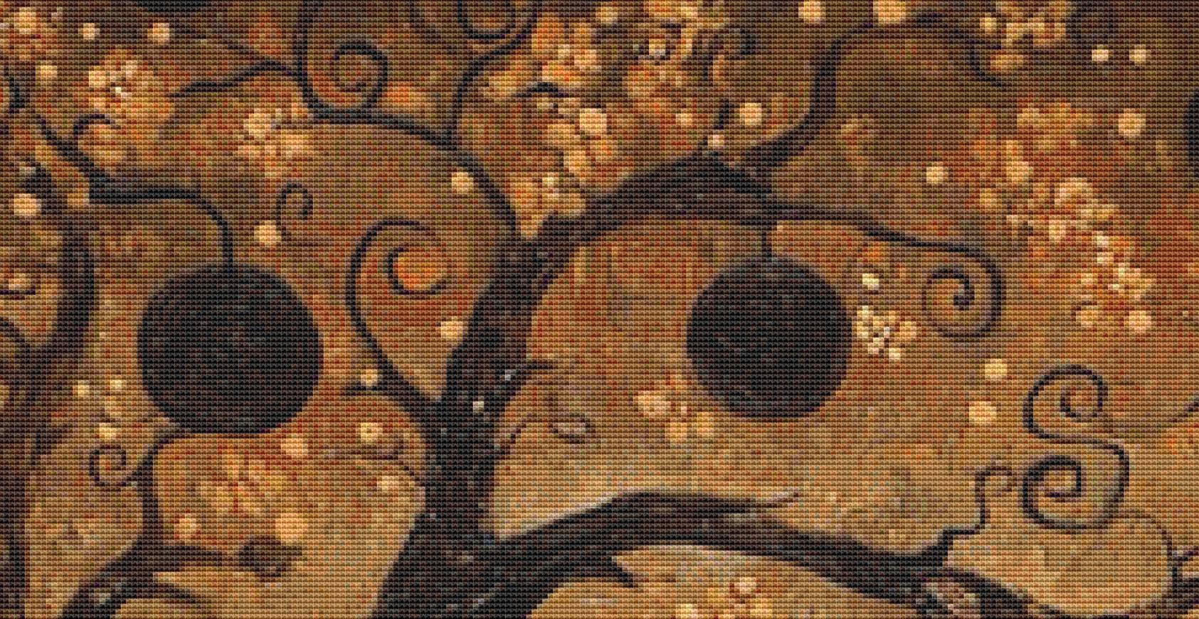 "Cat Date Night" full coverage counted cross stitch pattern.