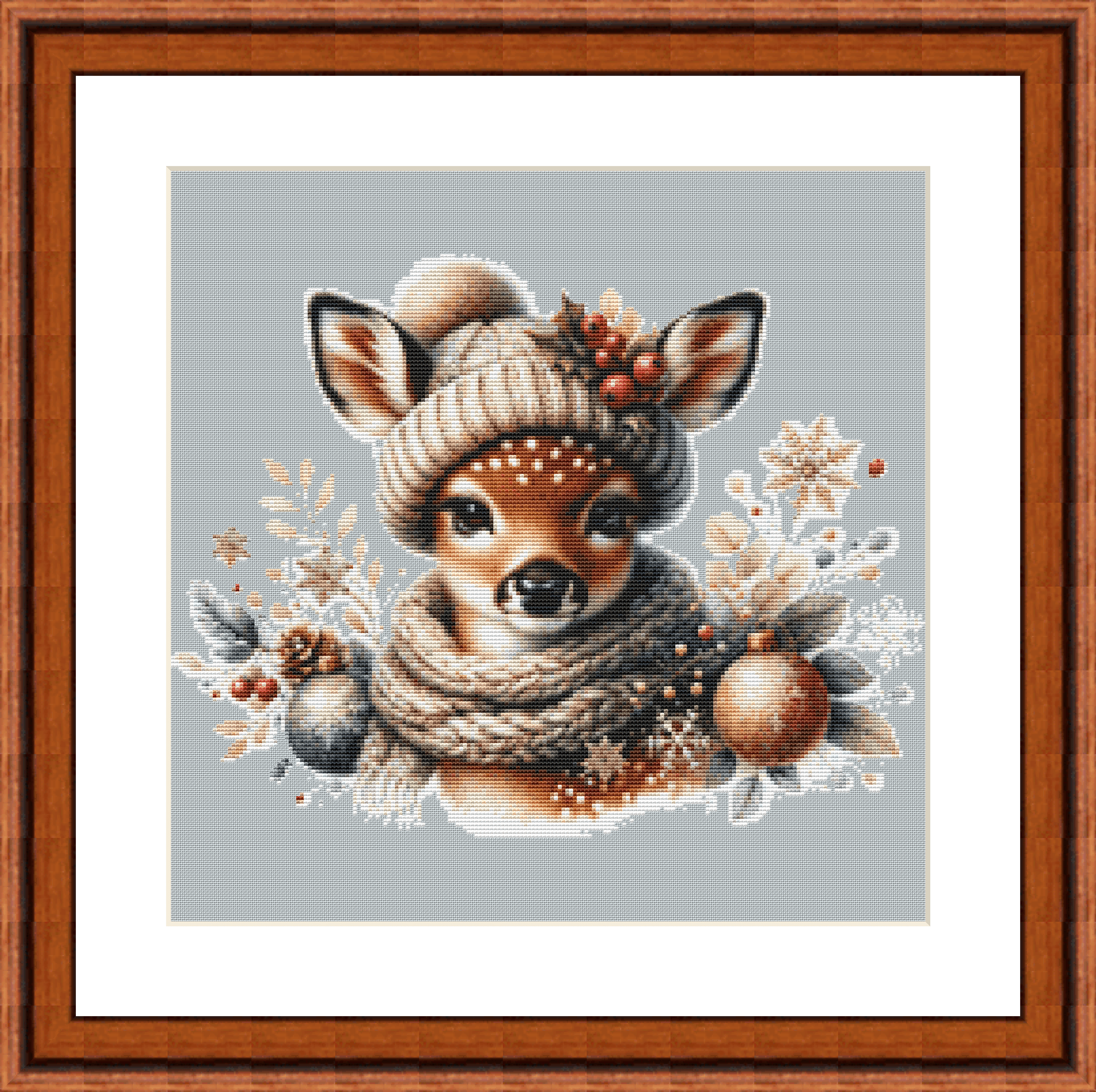 "Christmas Fawn" (Ornament) full coverage counted cross stitch pattern.