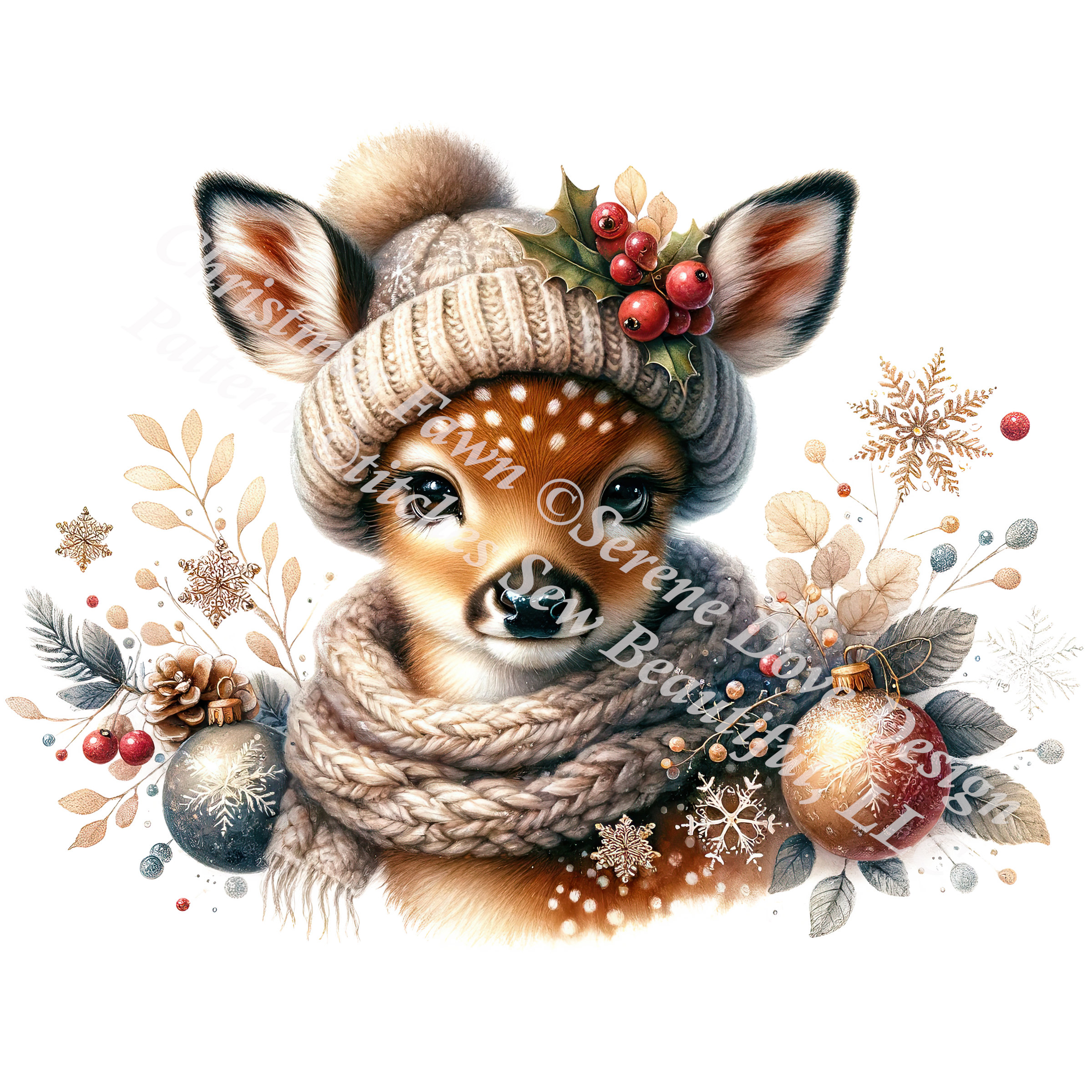 Christmas Fawn (Ornament) counted cross stitch pattern by Serene Dove Design