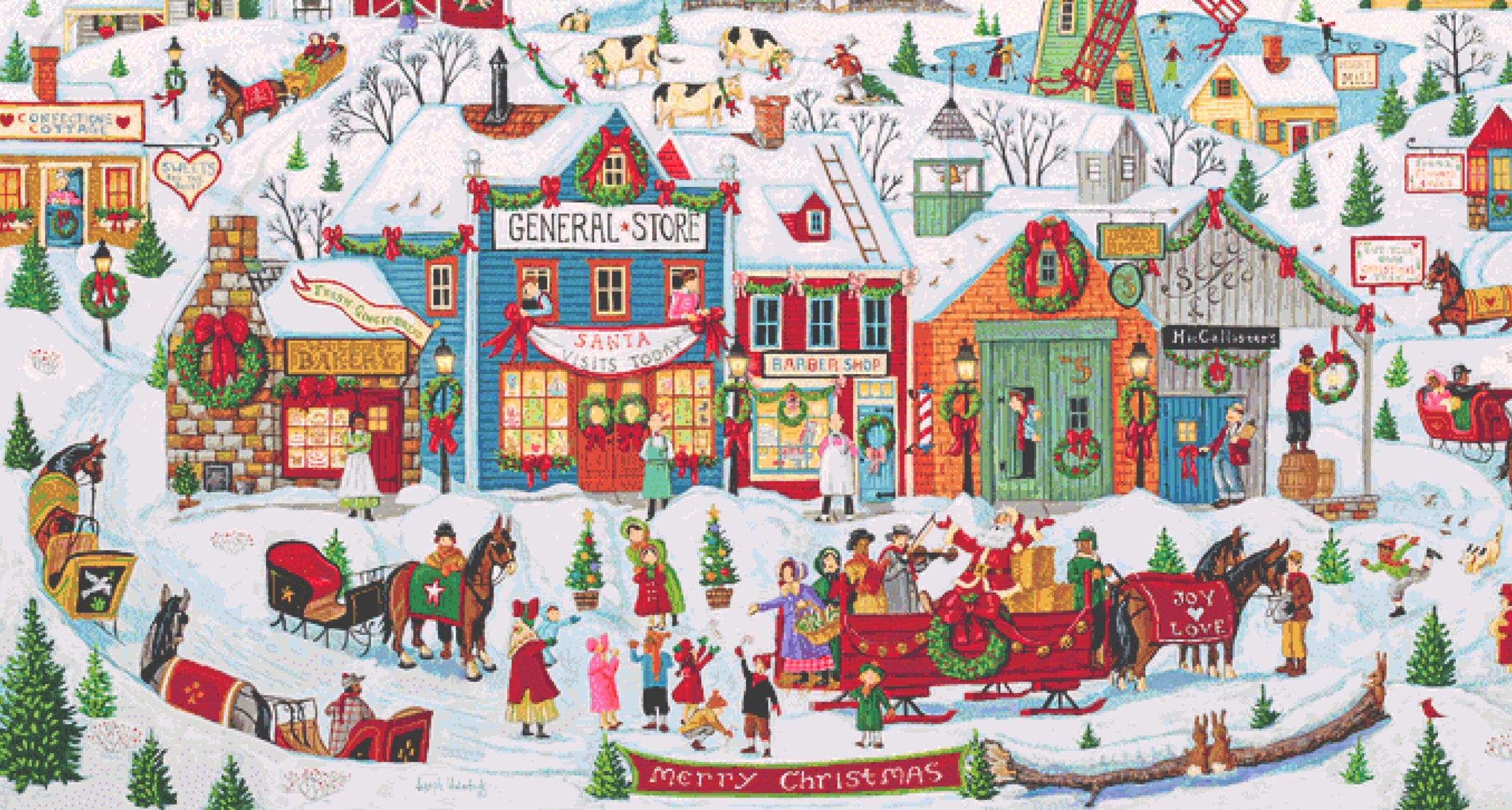 Christmas in Our Town (Max Size/Colors) cross stitch pattern by Joseph Holodook/Portfields Fine Art Licensing