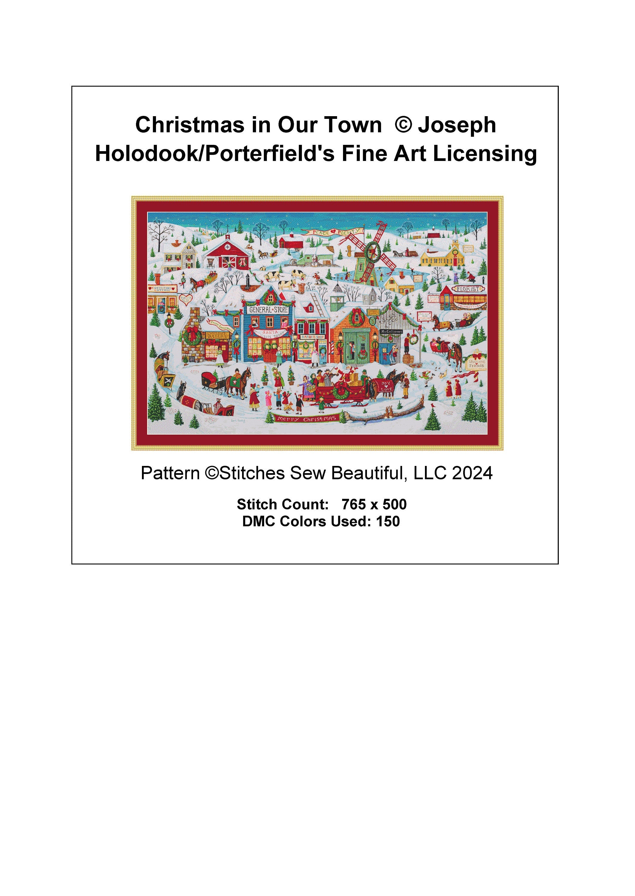 "Christmas in Our Town" (Max Size/Colors) full coverage cross stitch pattern.