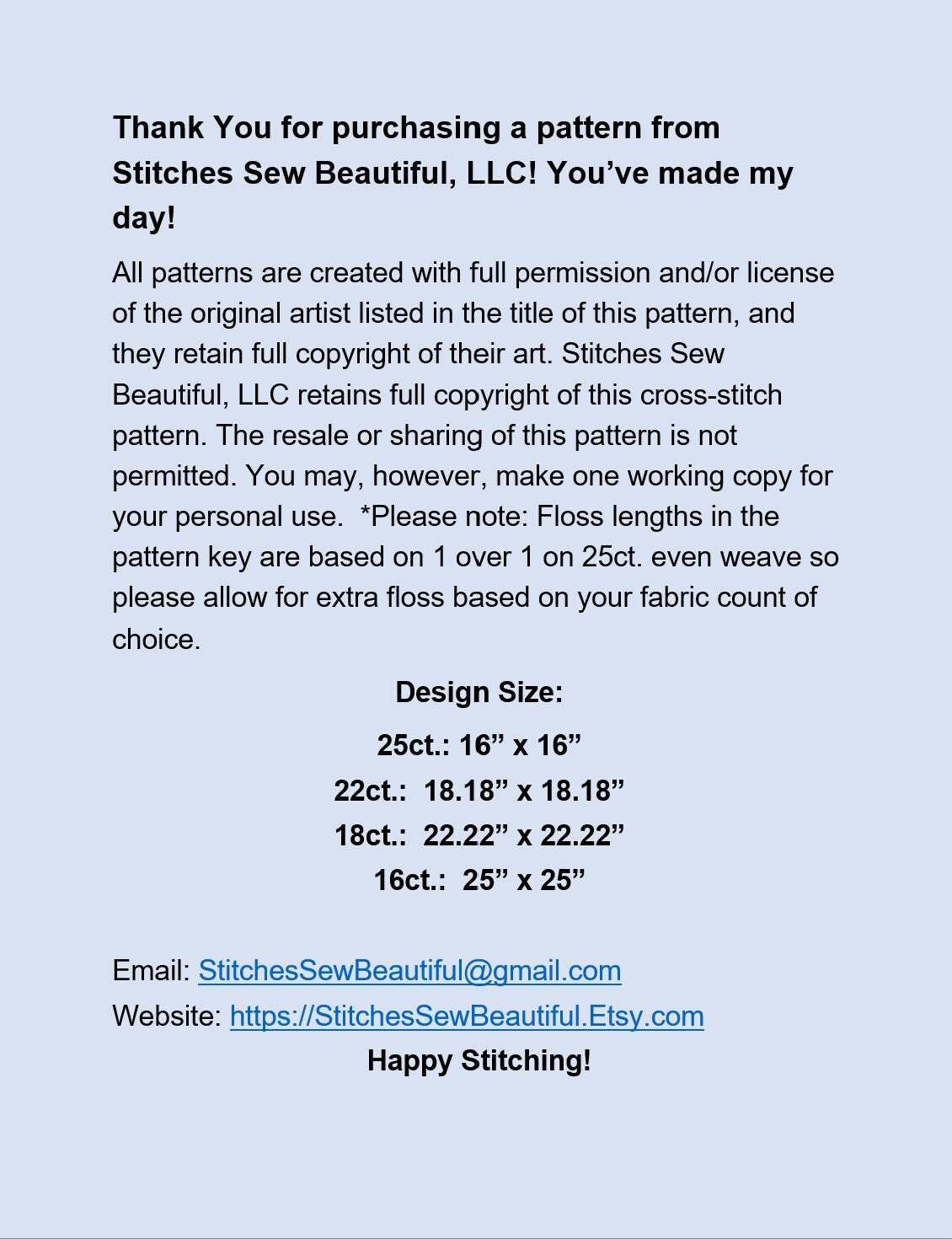 Stitch count: 400 x 400. 152 DMC colors used. Digital Format.
