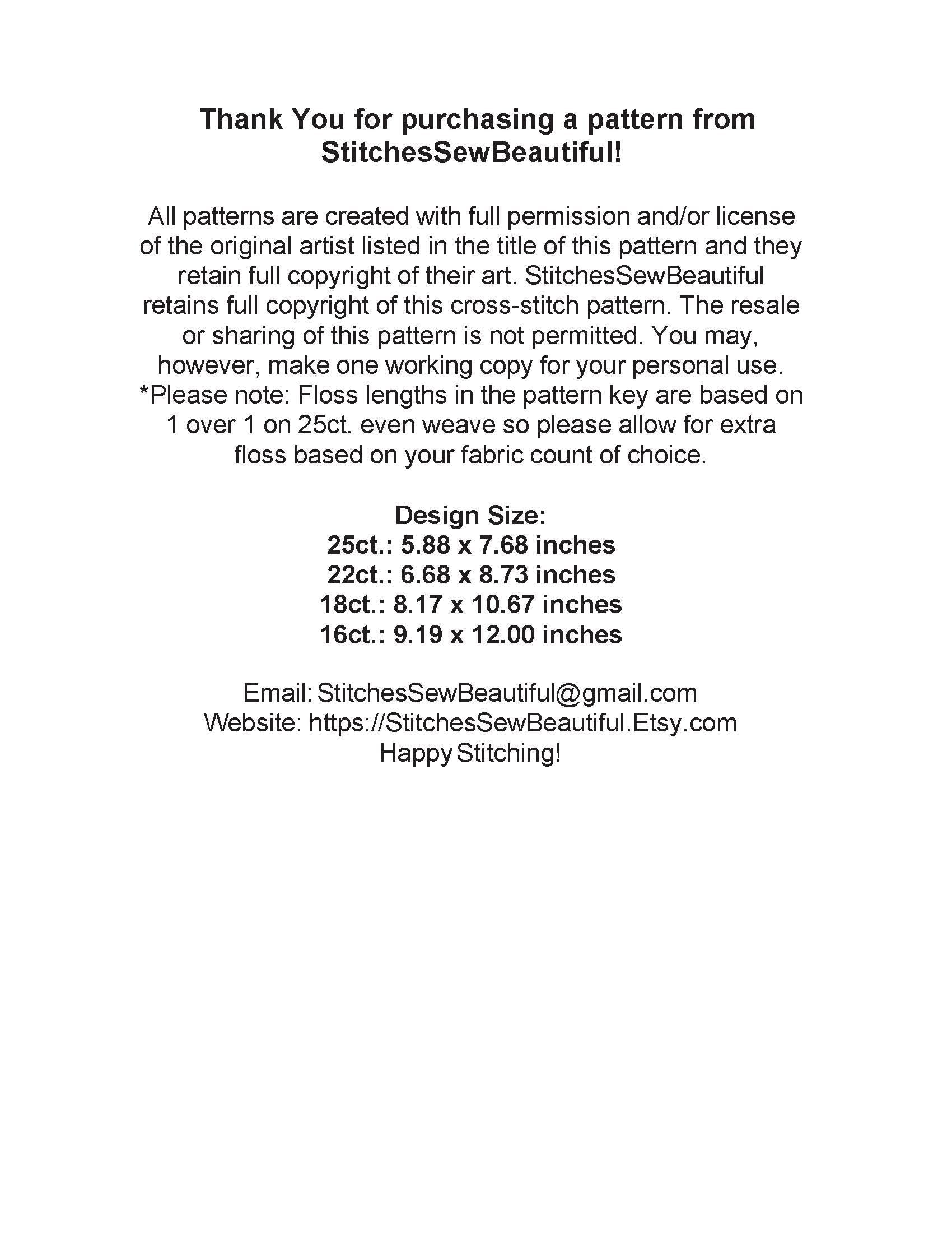 Patterns created with full license and/or permission of the original artist.