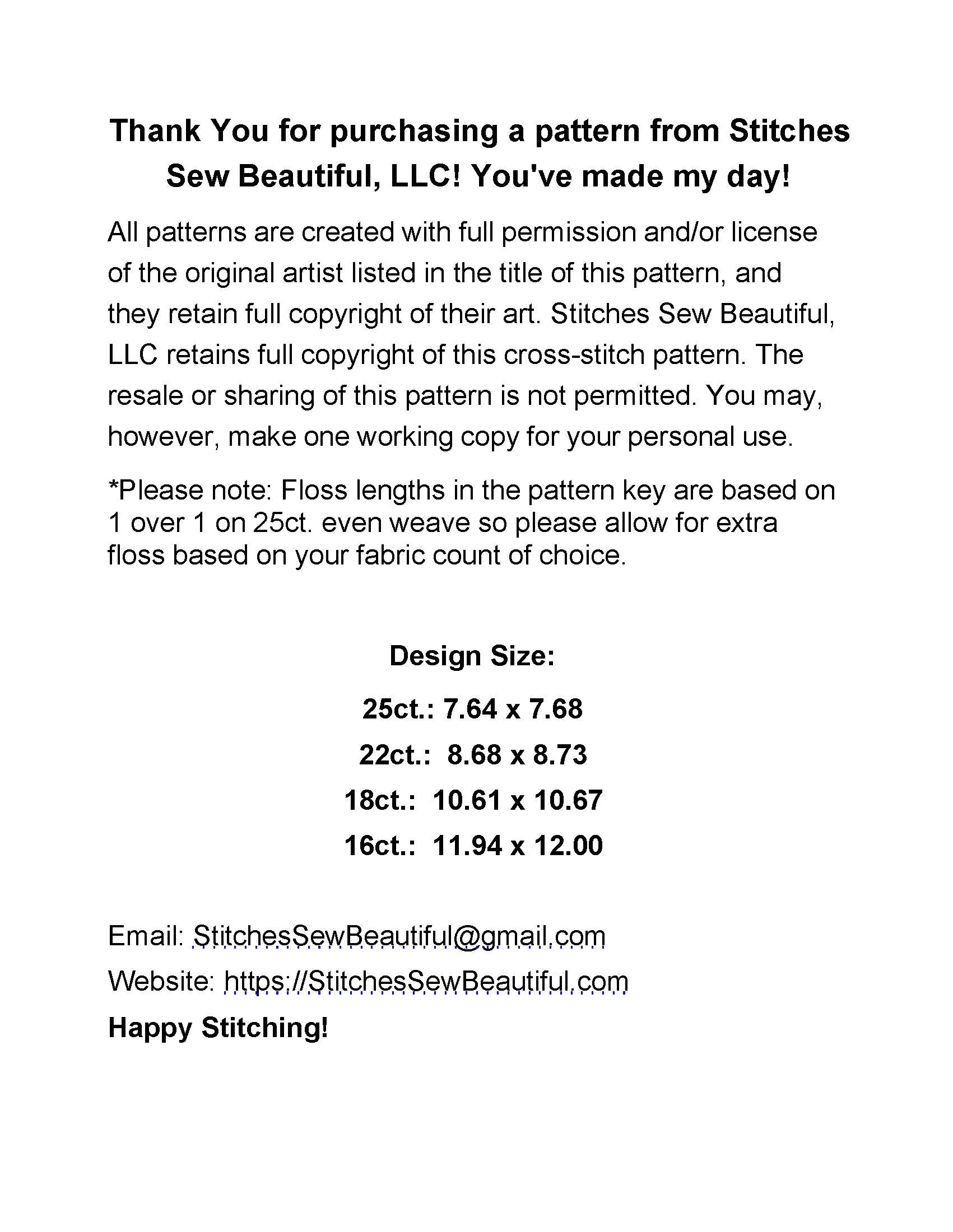 Charted by Stitches Sew Beautiful, LLC. Copyright 2024.