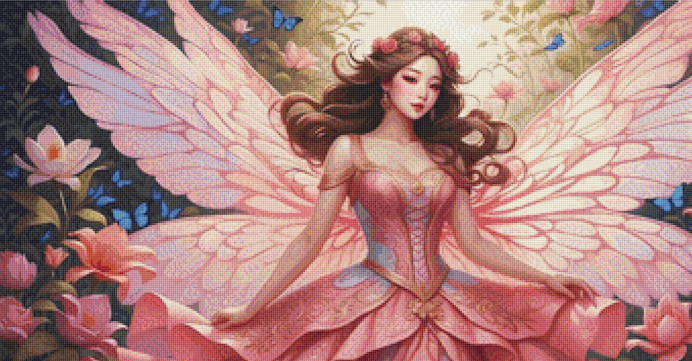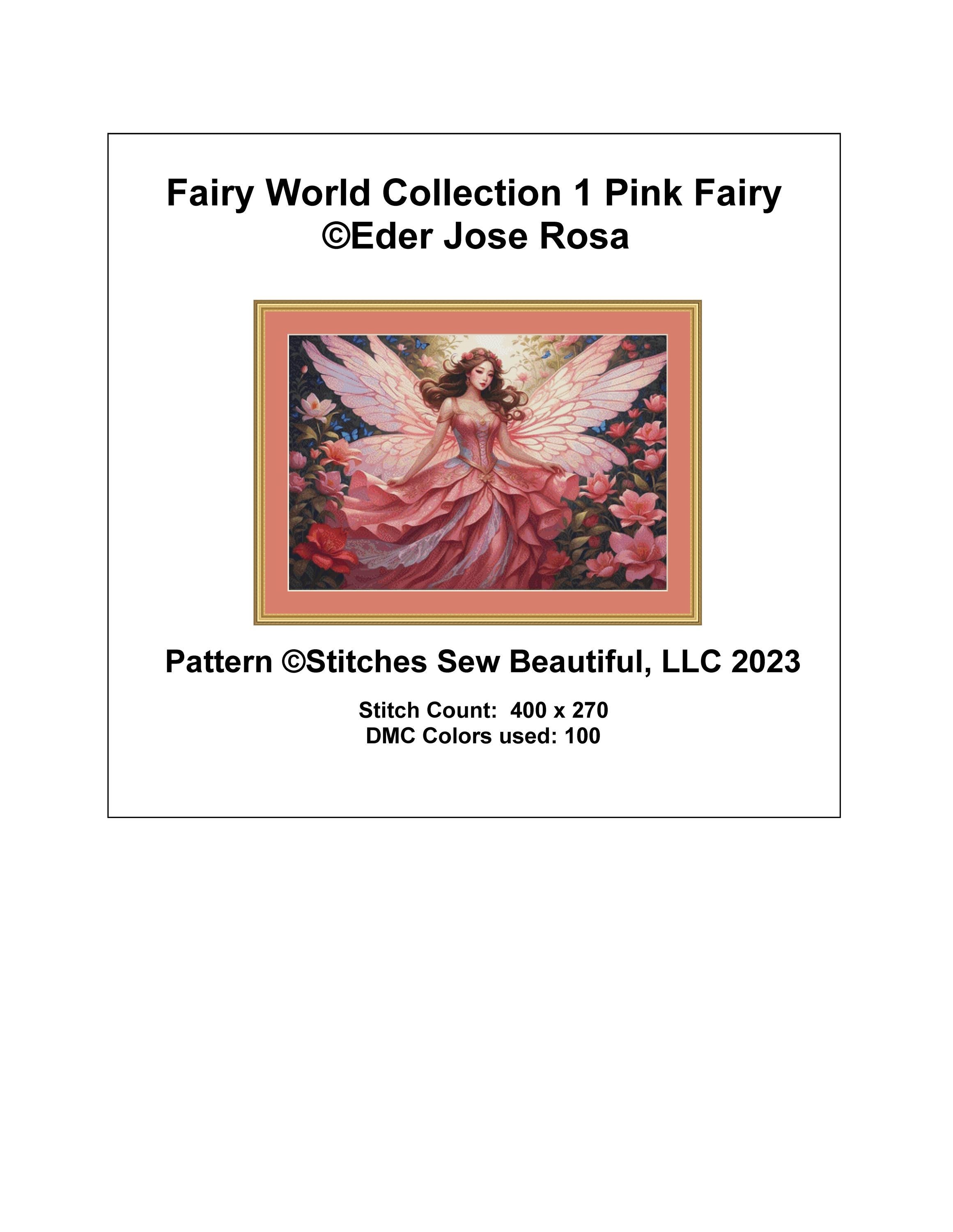 "Fairy World Collection No. 1 Pink Fairy" full coverage cross stitch pattern by Eder Jose Rosa.