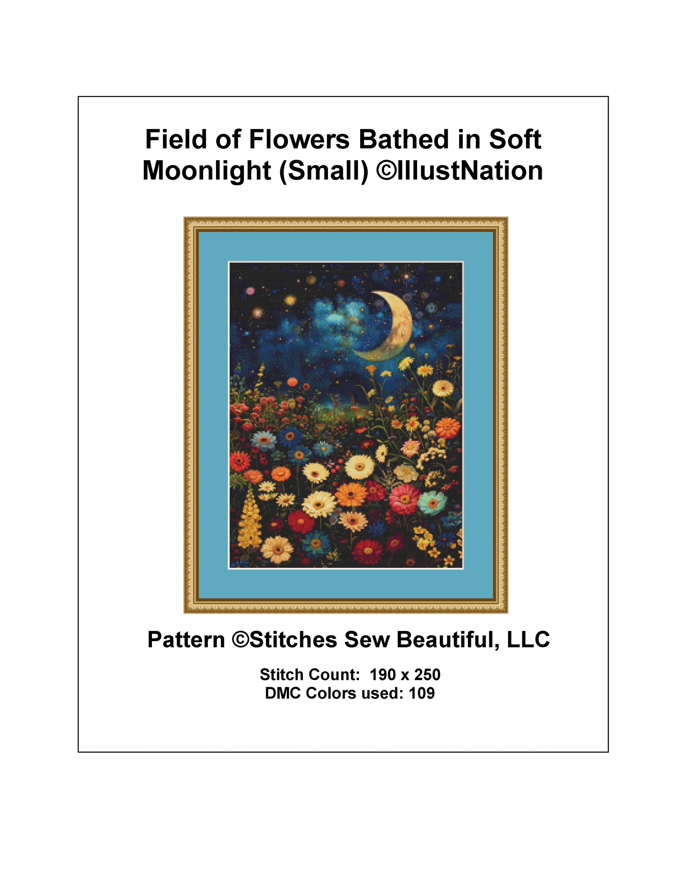 Field of Flowers Bathed in Soft Moonlight (Small) counted cross stitch pattern by IllustNation
