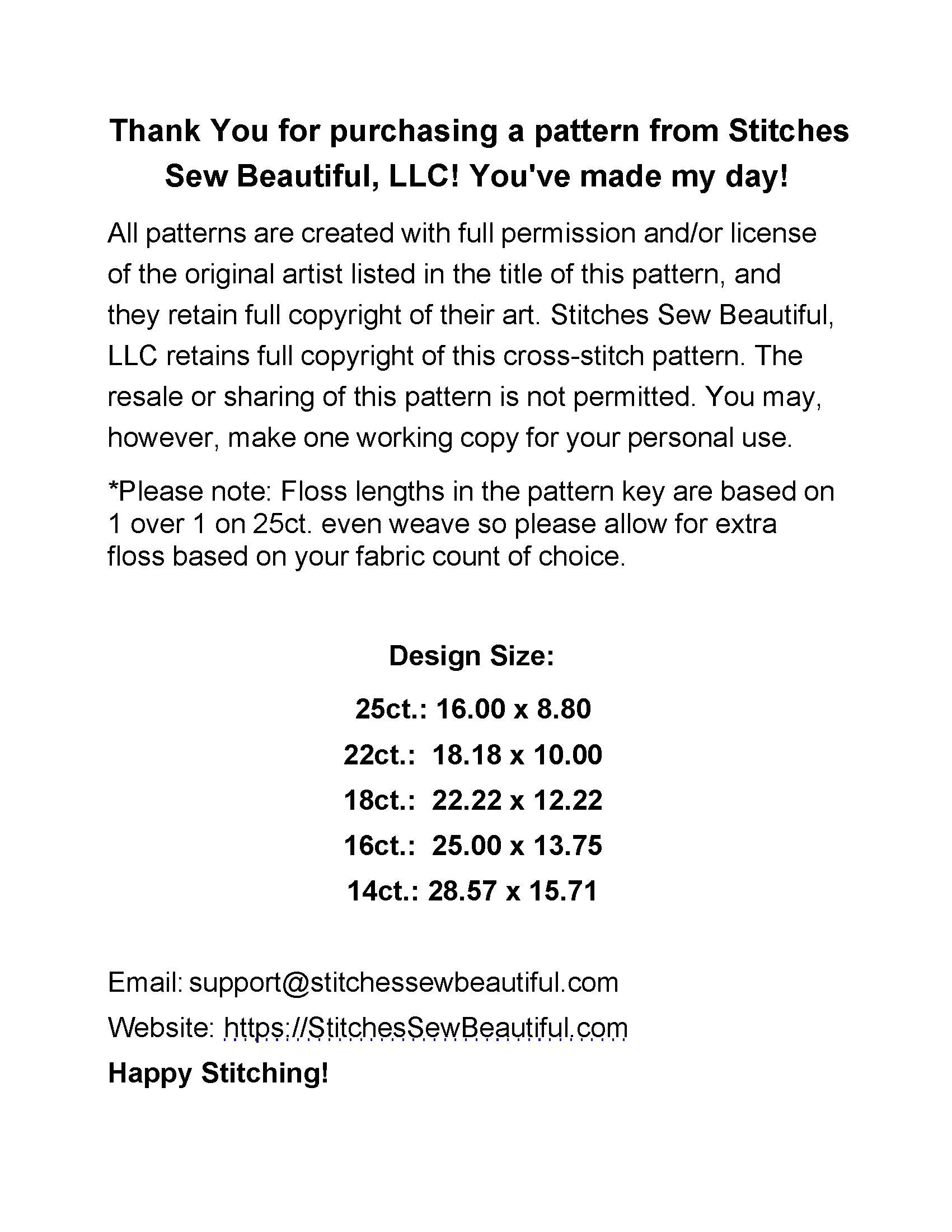 Patterns created with full license and/or permission of the original artist.
