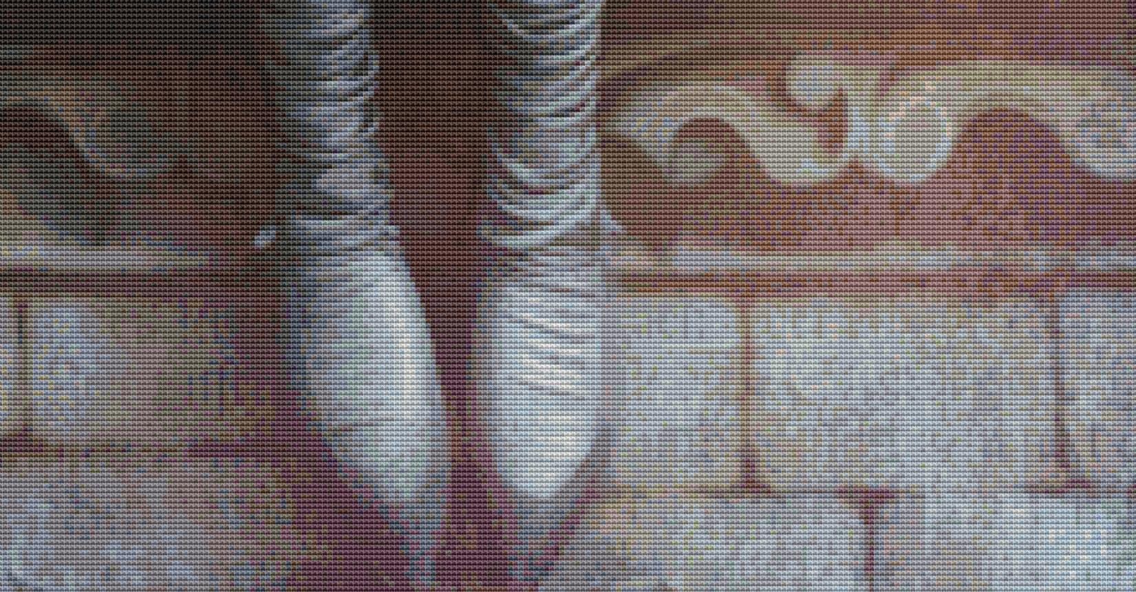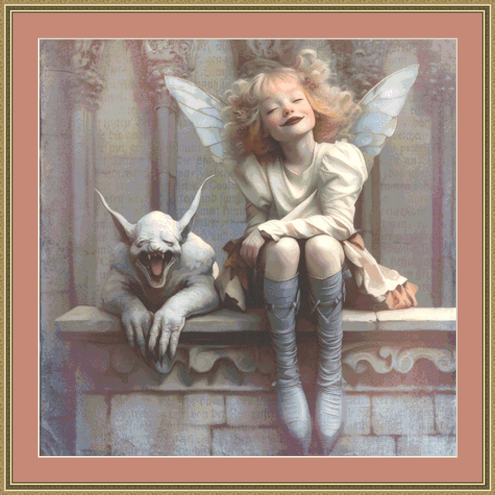 "Gloria and the Gargoyle" full coverage counted cross stitch pattern.