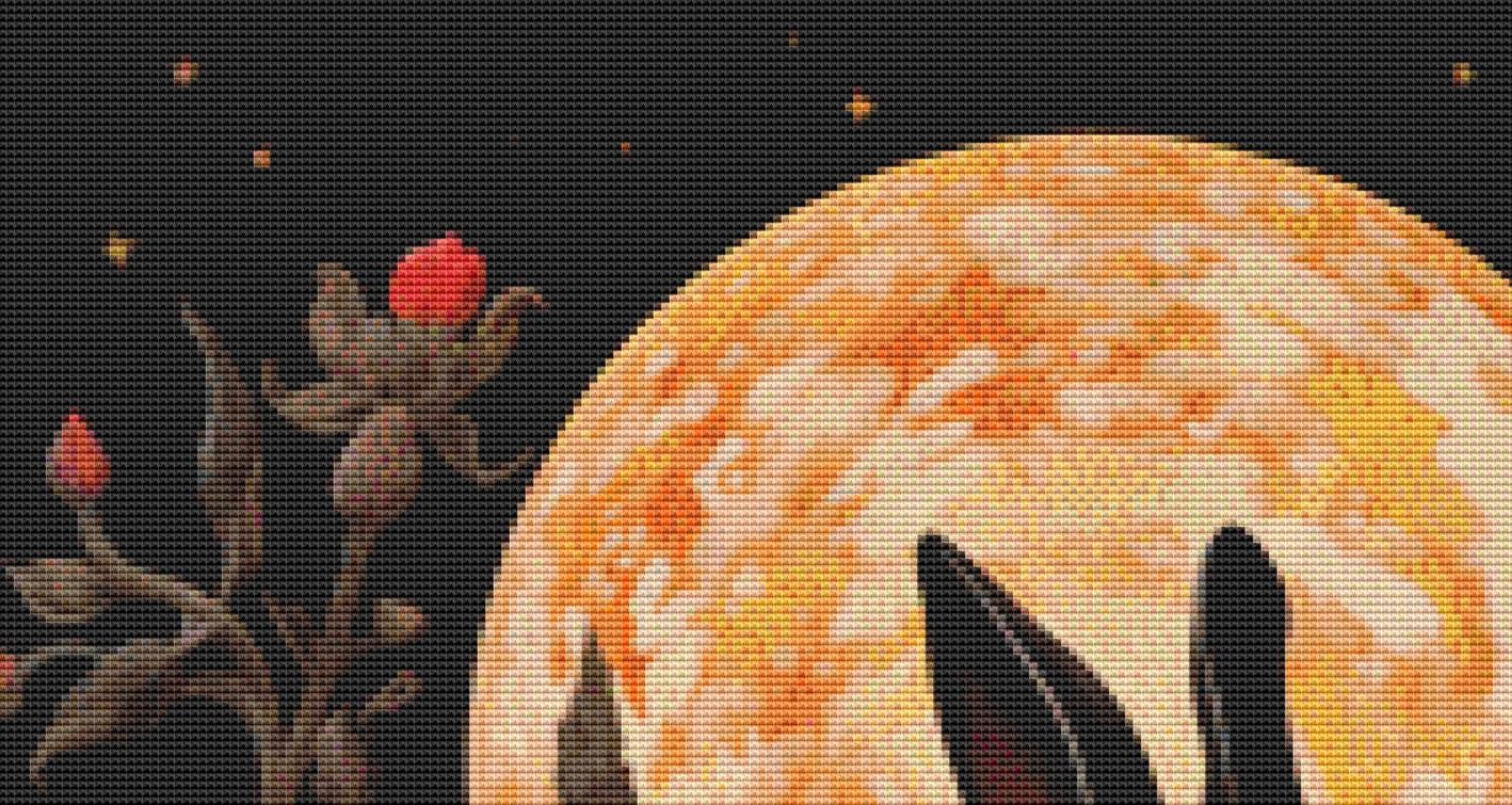 "Gothic Botanical Rabbit" full coverage counted cross stitch pattern.