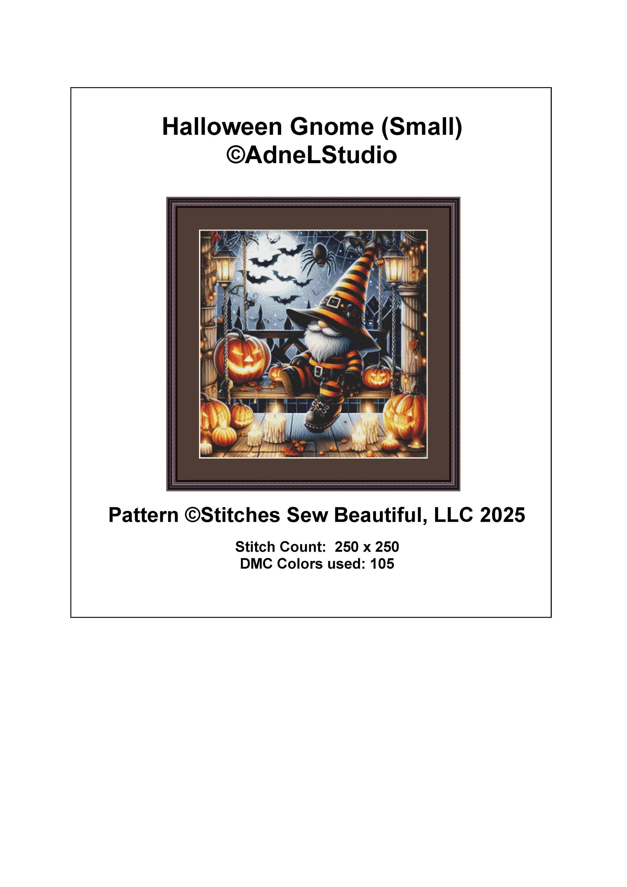"Halloween Gnome" (Small) full coverage counted cross stitch pattern.
