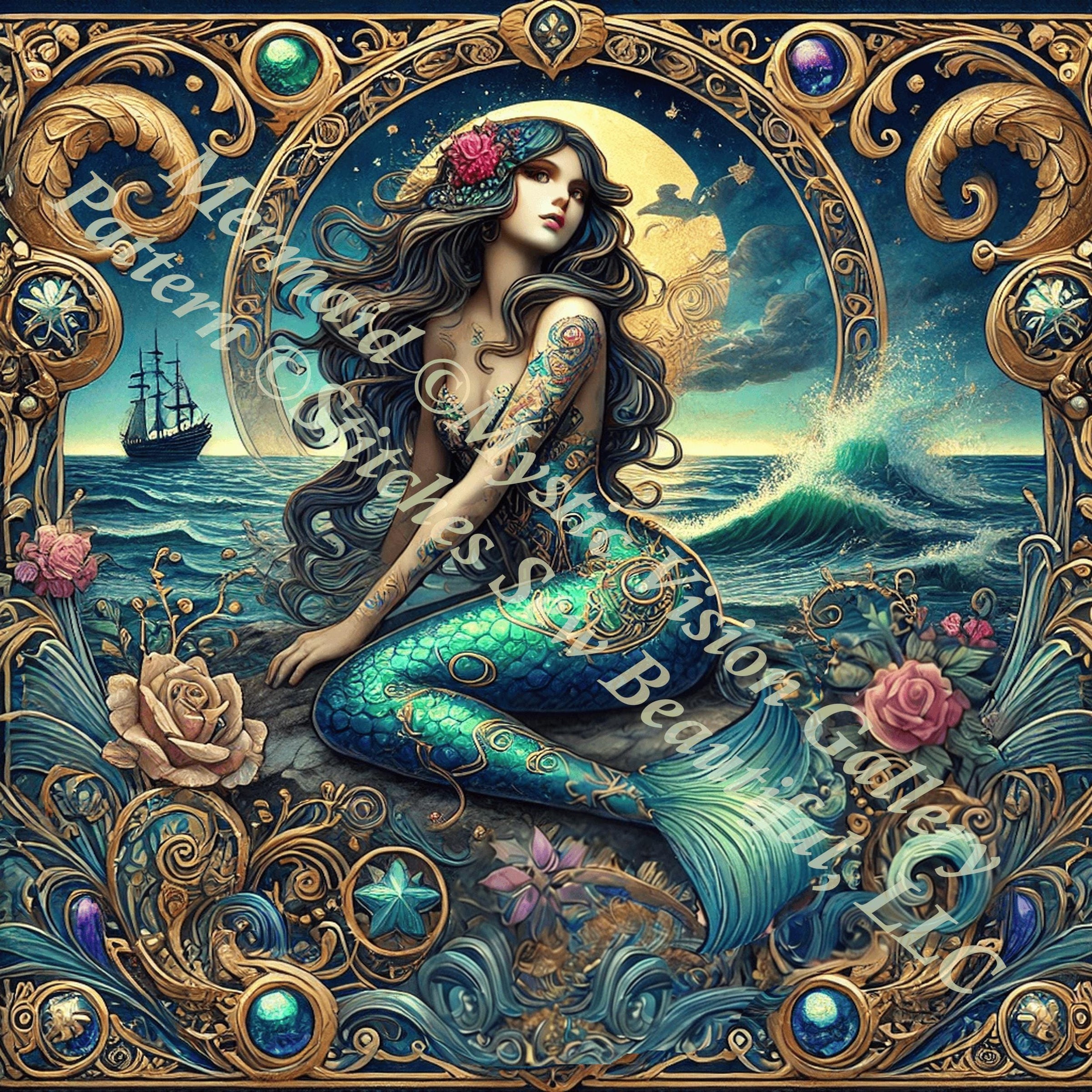 Mermaid counted cross stitch pattern by Mystic Vision Gallery