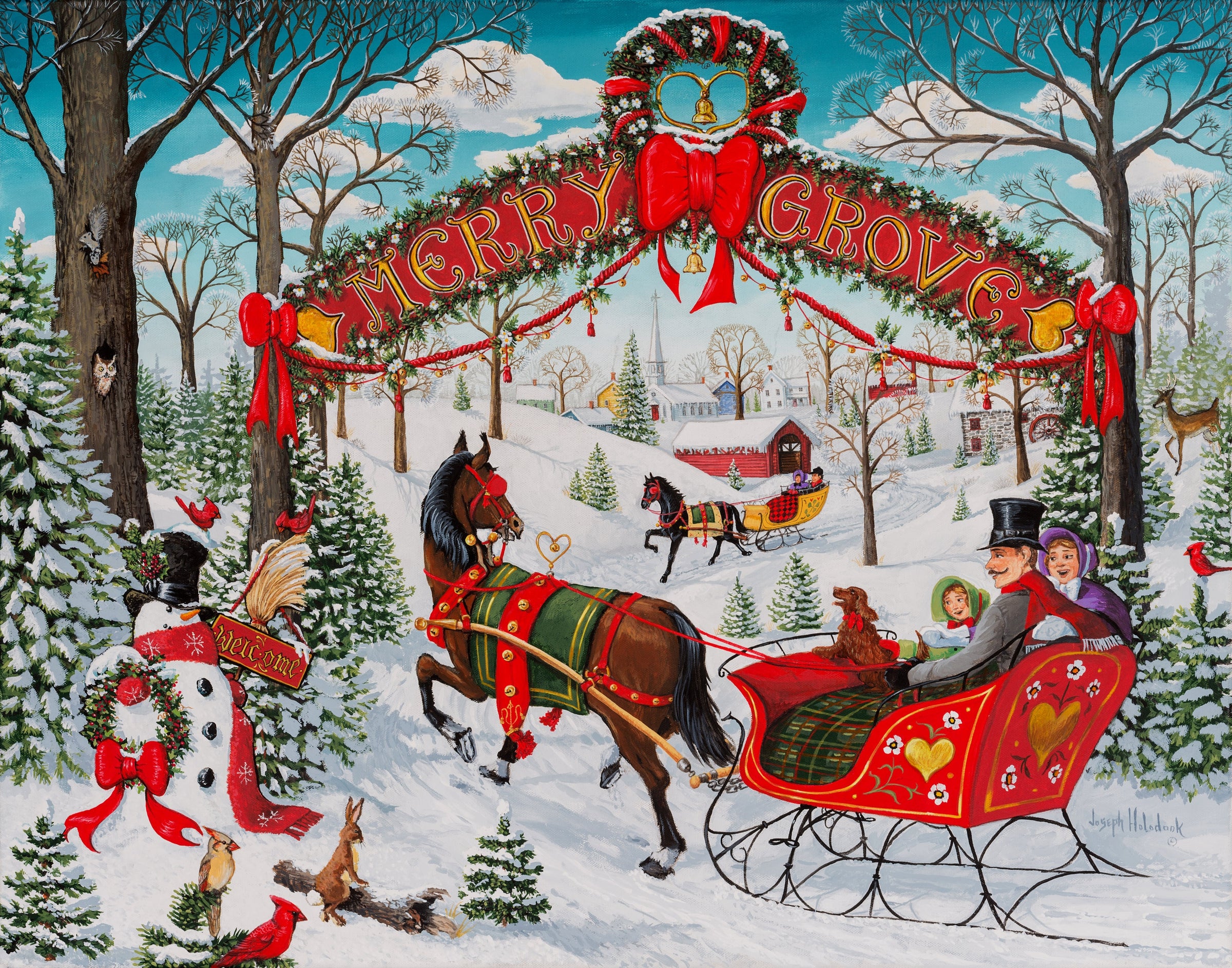 "Merry Grove" full coverage cross stitch pattern by Joseph Holodook/Porterfields Fine Art Licensing.