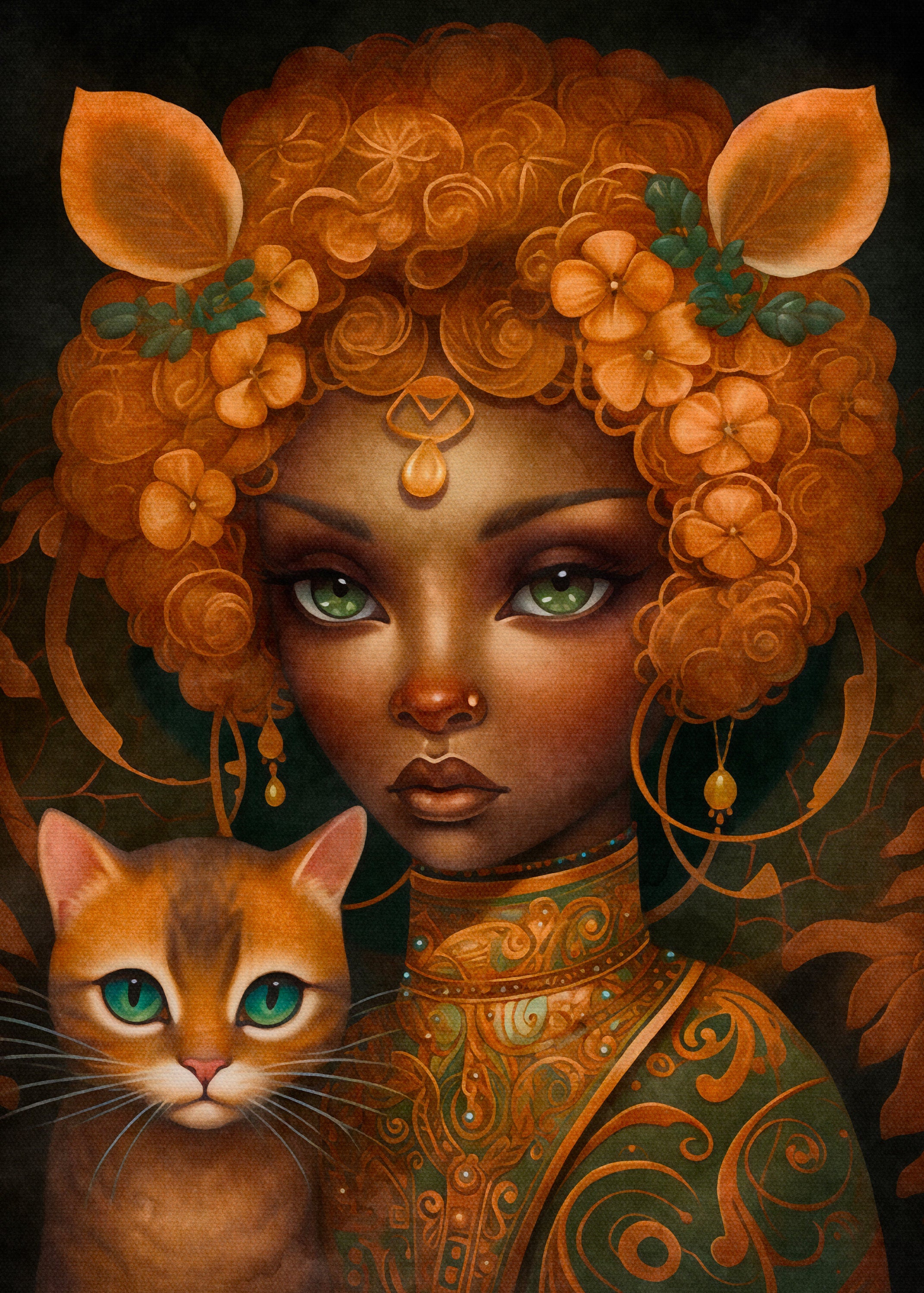 "Mystical Cat Girl 7" full coverage cross stitch pattern by Dutch Lady Mystic Art.