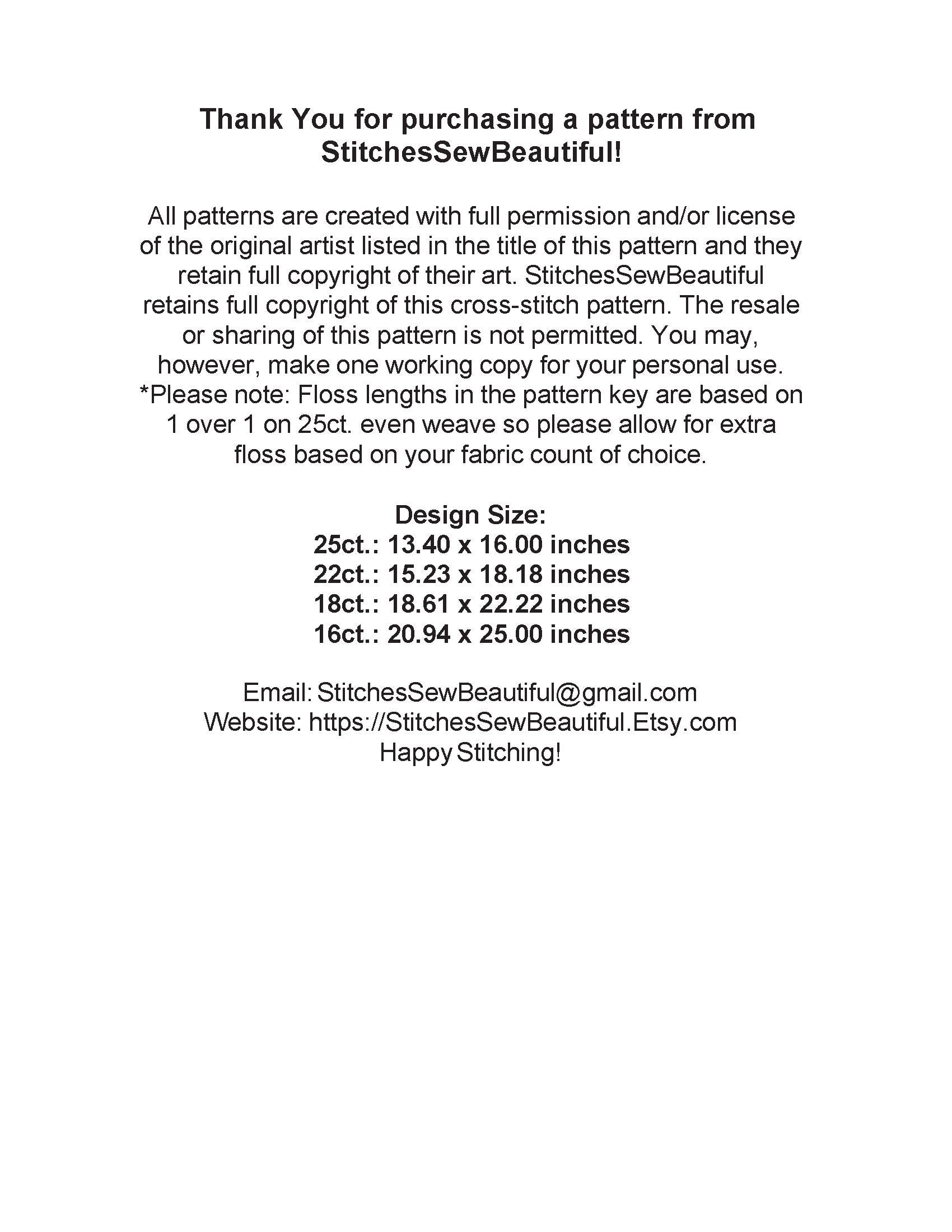 Patterns created with full license and/or permission of the original artist.