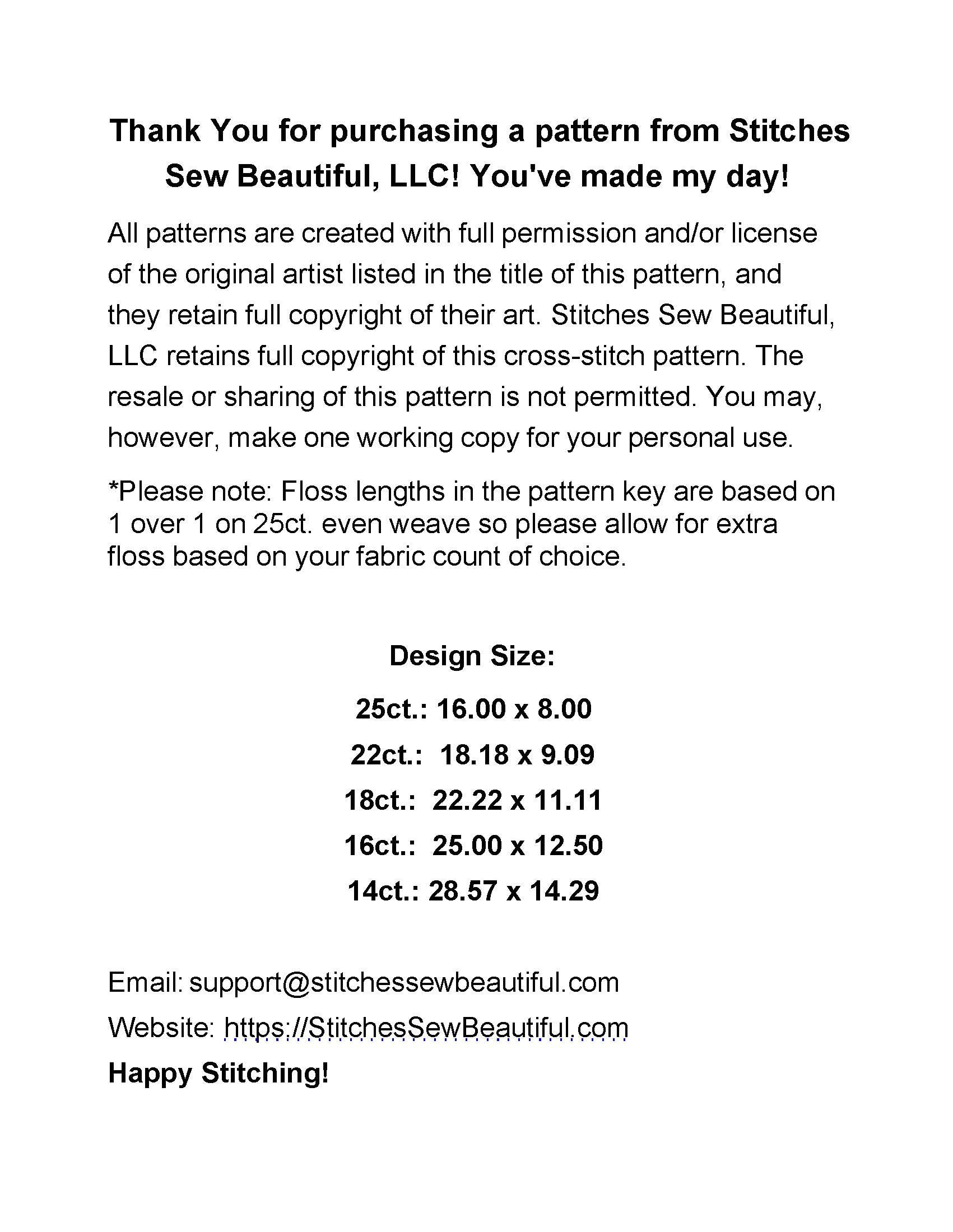 Patterns created with full license and/or permission of the original artist.