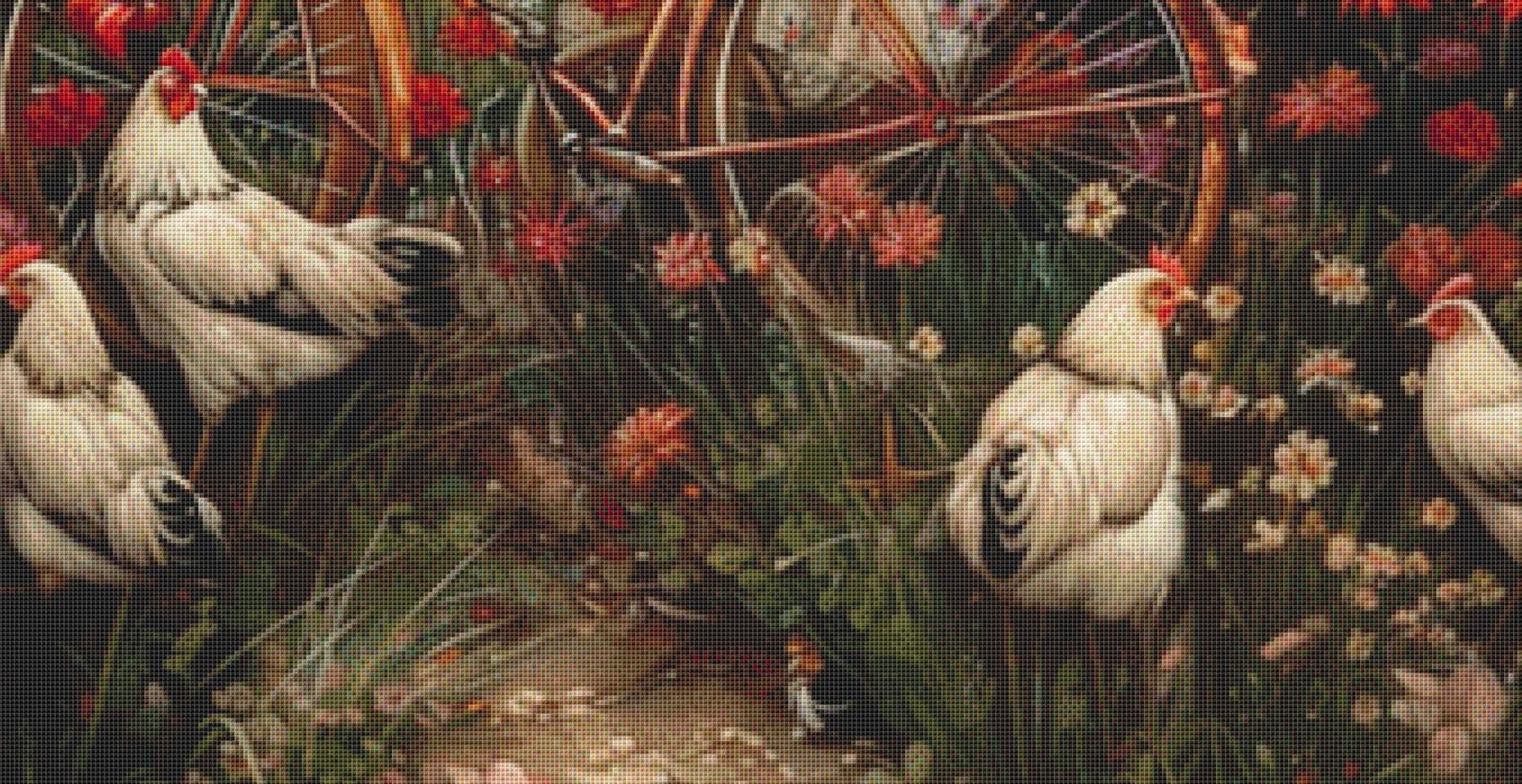 "Shabby Chic Countryside" (Max Size/Color) full coverage counted cross stitch pattern.