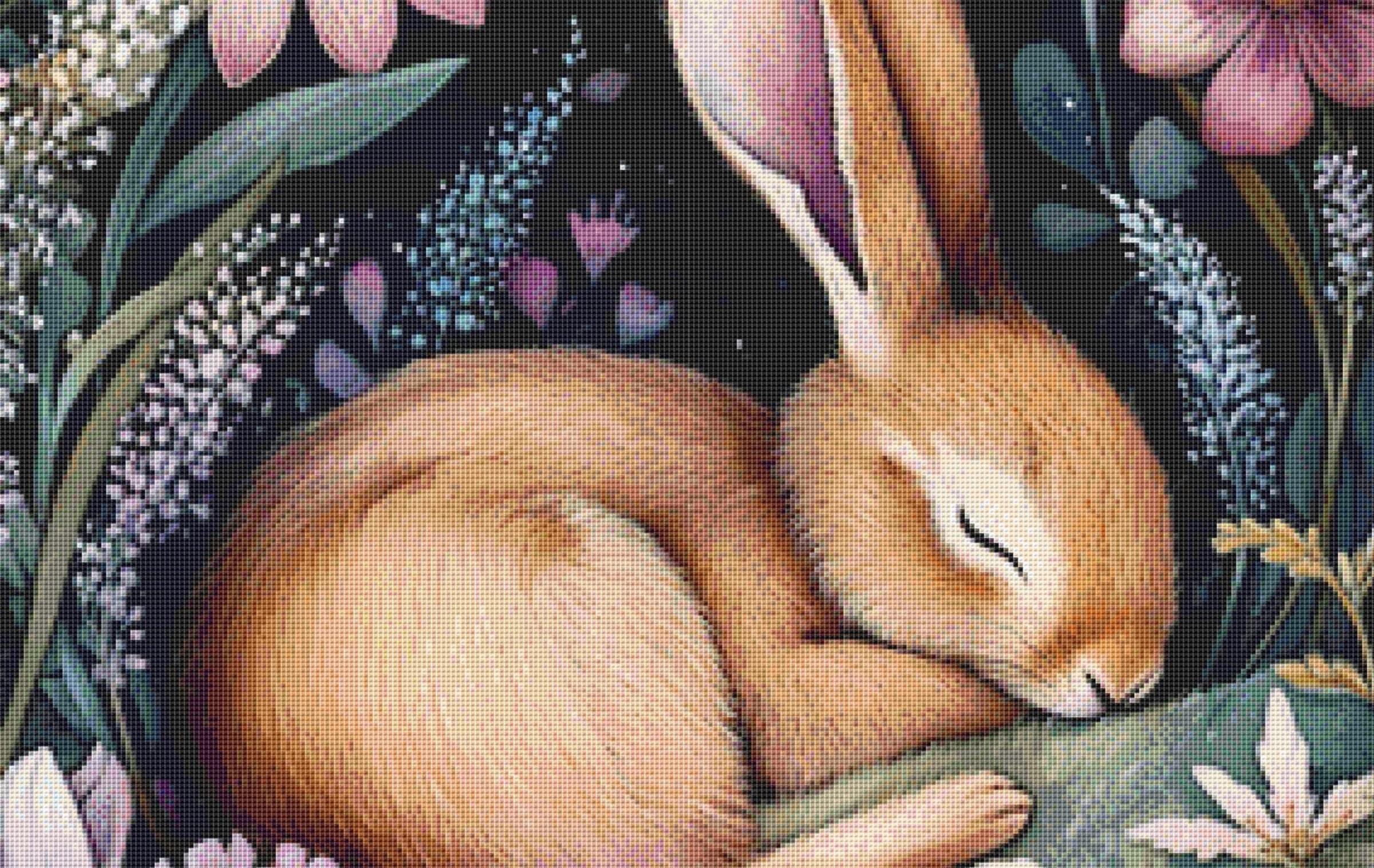 "Sleeping Hare" full coverage counted cross stitch pattern.