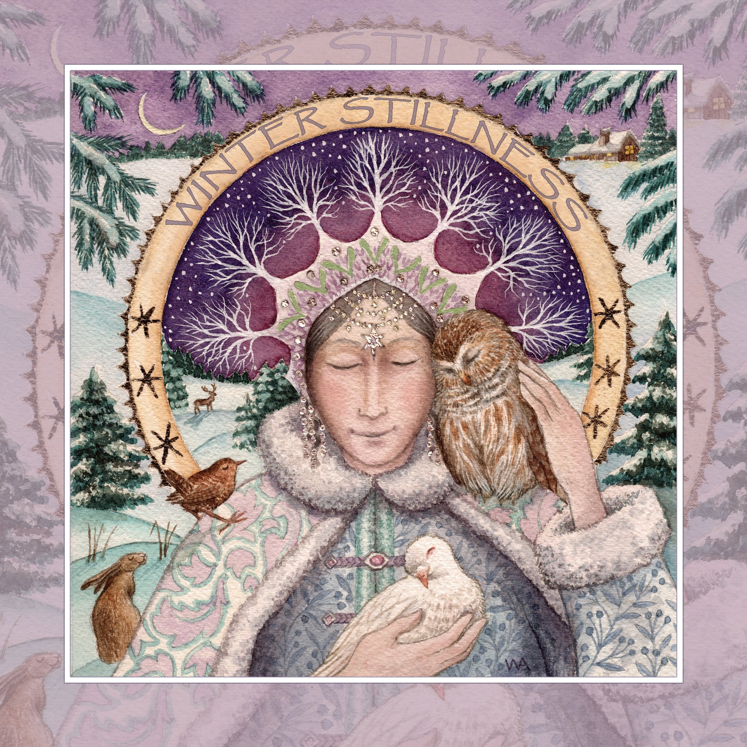 "Solstice Stillness" full coverage cross stitch pattern by Wendy Andrew of Painting Dreams.