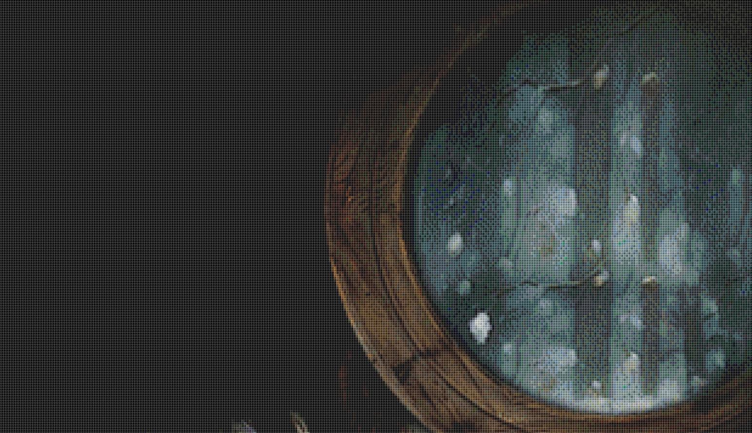 "Squirrel by Window" full coverage counted cross stitch pattern.