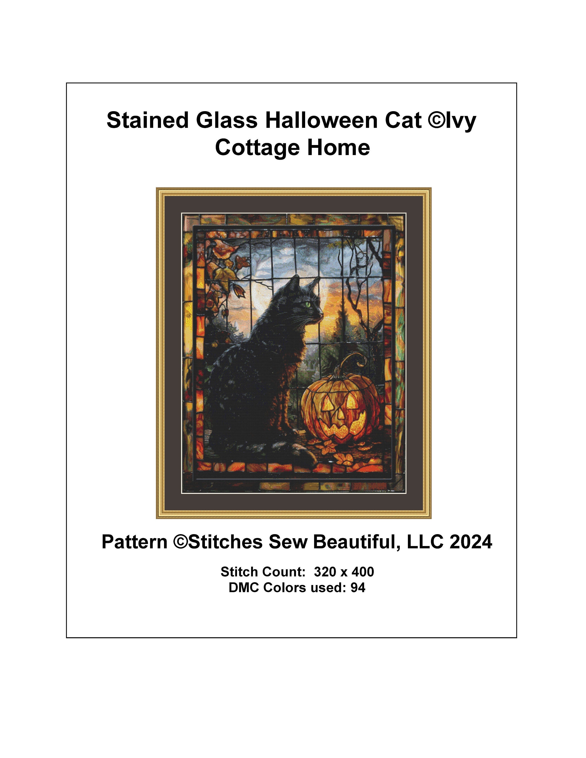 Stained Glass Halloween Cat cross stitch pattern by IvyCottageHome