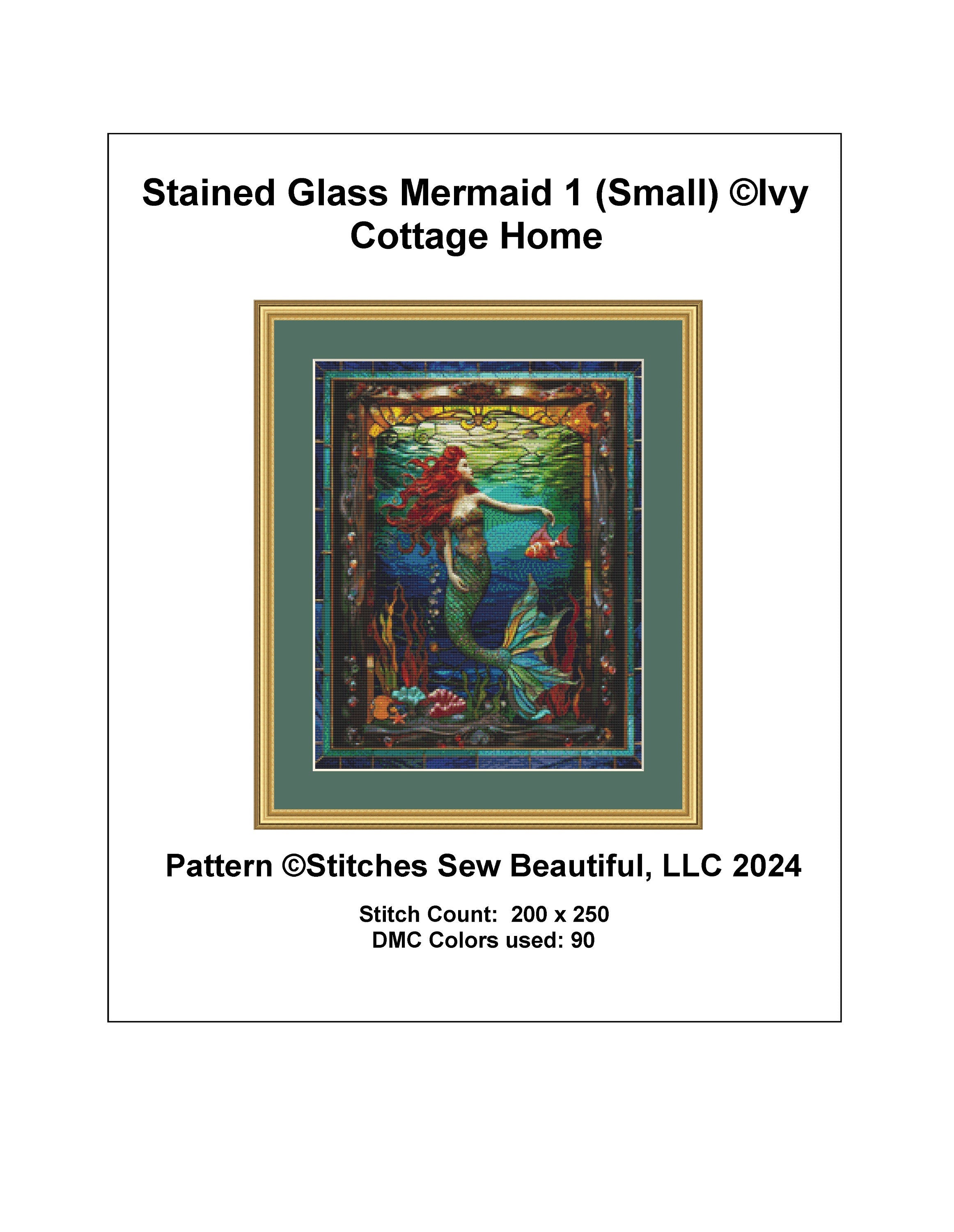 Stained Glass Mermaid 1 (Small) cross stitch pattern by IvyCottageHome