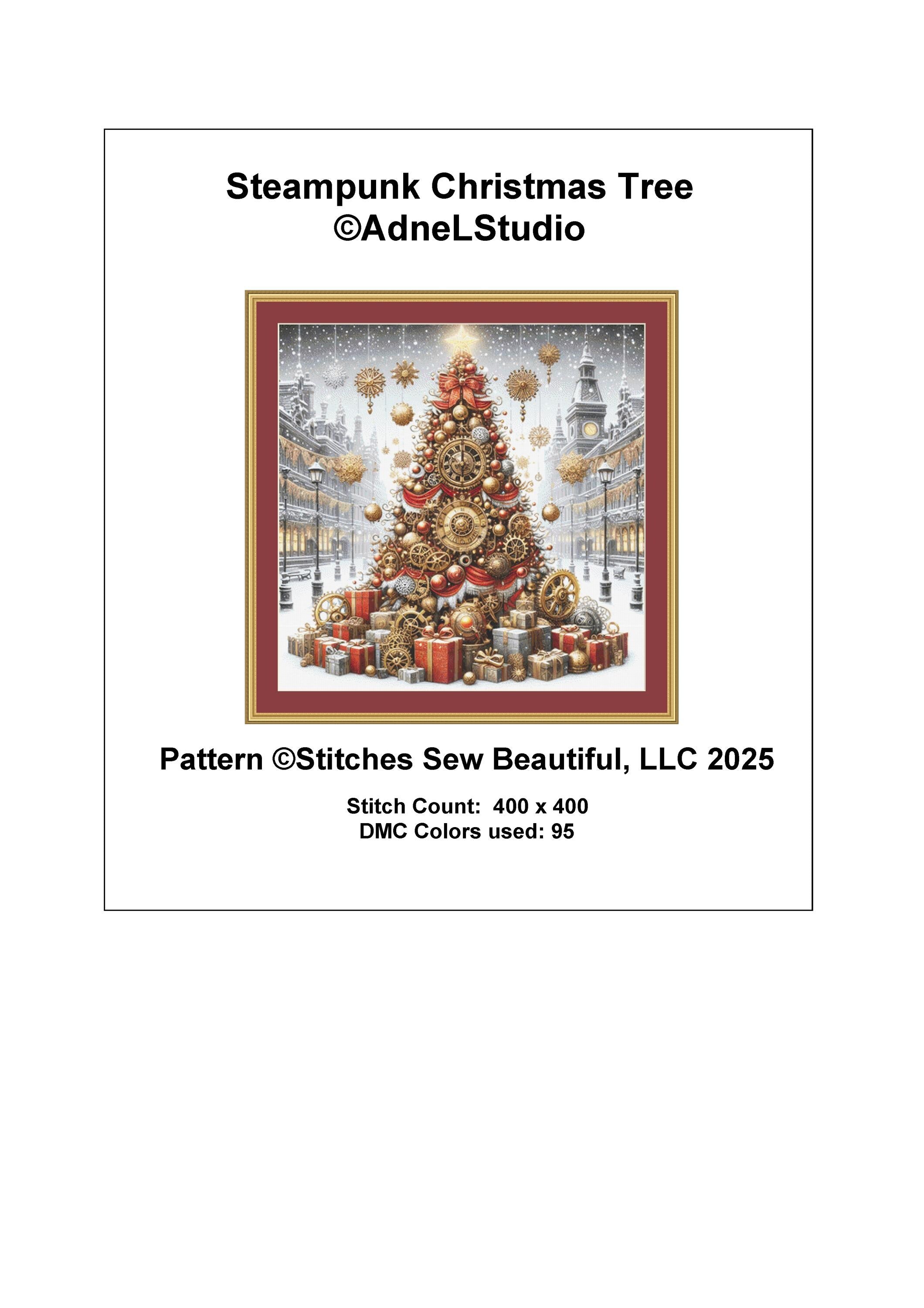 Steampunk Christmas Tree counted cross stitch pattern by AdneLStudio