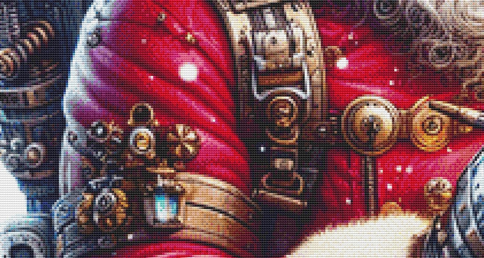 "Steampunk Santa 2" full coverage counted cross stitch pattern.