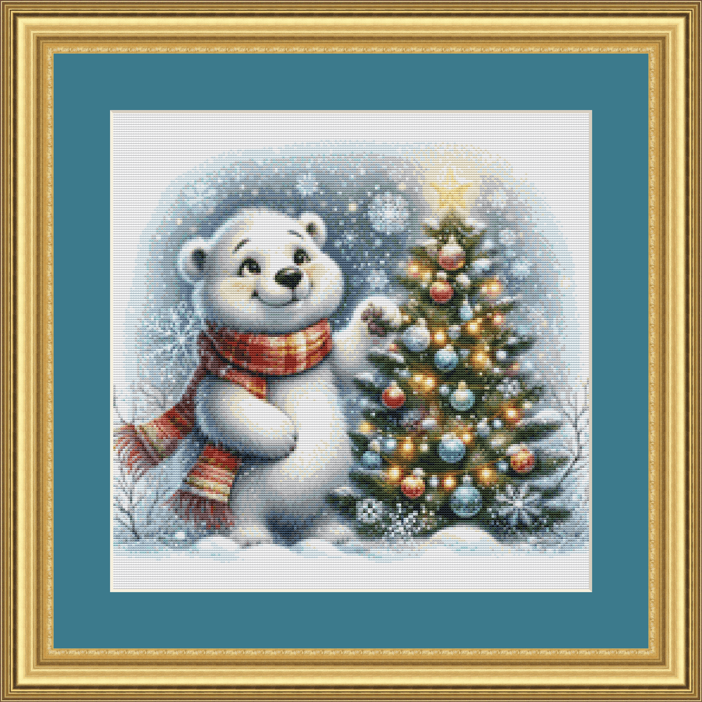 "Sweet Christmas Polar Bear" (Ornament) full coverage cross stitch pattern.