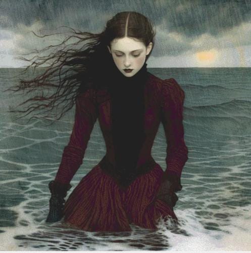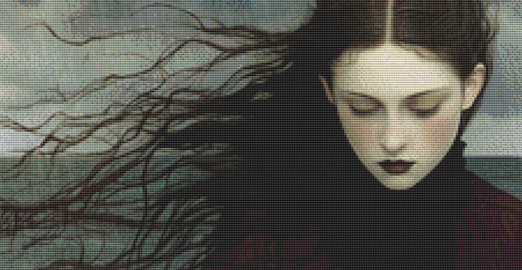 "The Rain" full coverage counted cross stitch pattern.