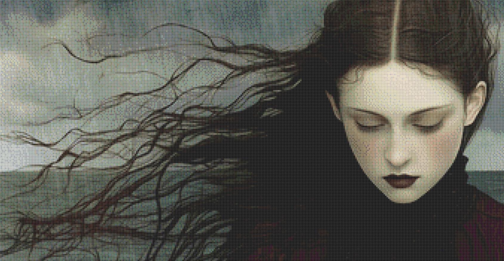 "The Rain" (Max Size/Color) full coverage counted cross stitch pattern.