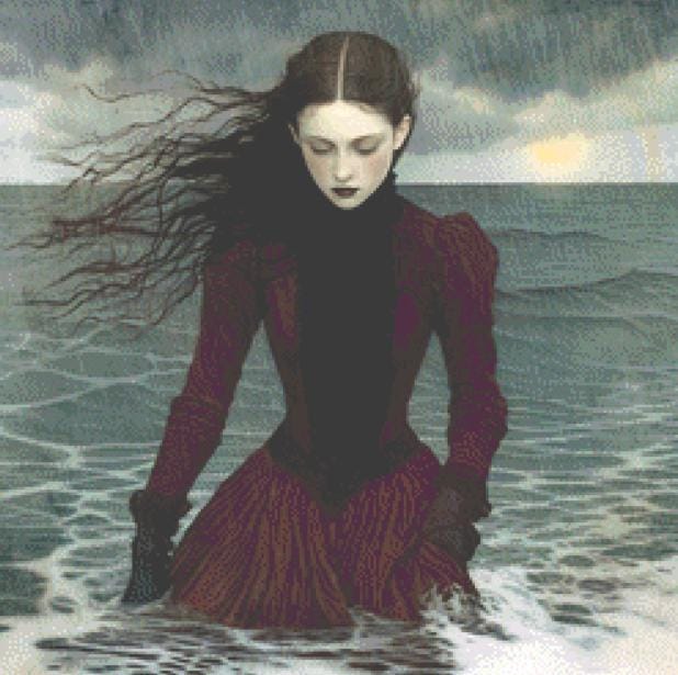 "The Rain" (Small) full coverage counted cross stitch pattern.