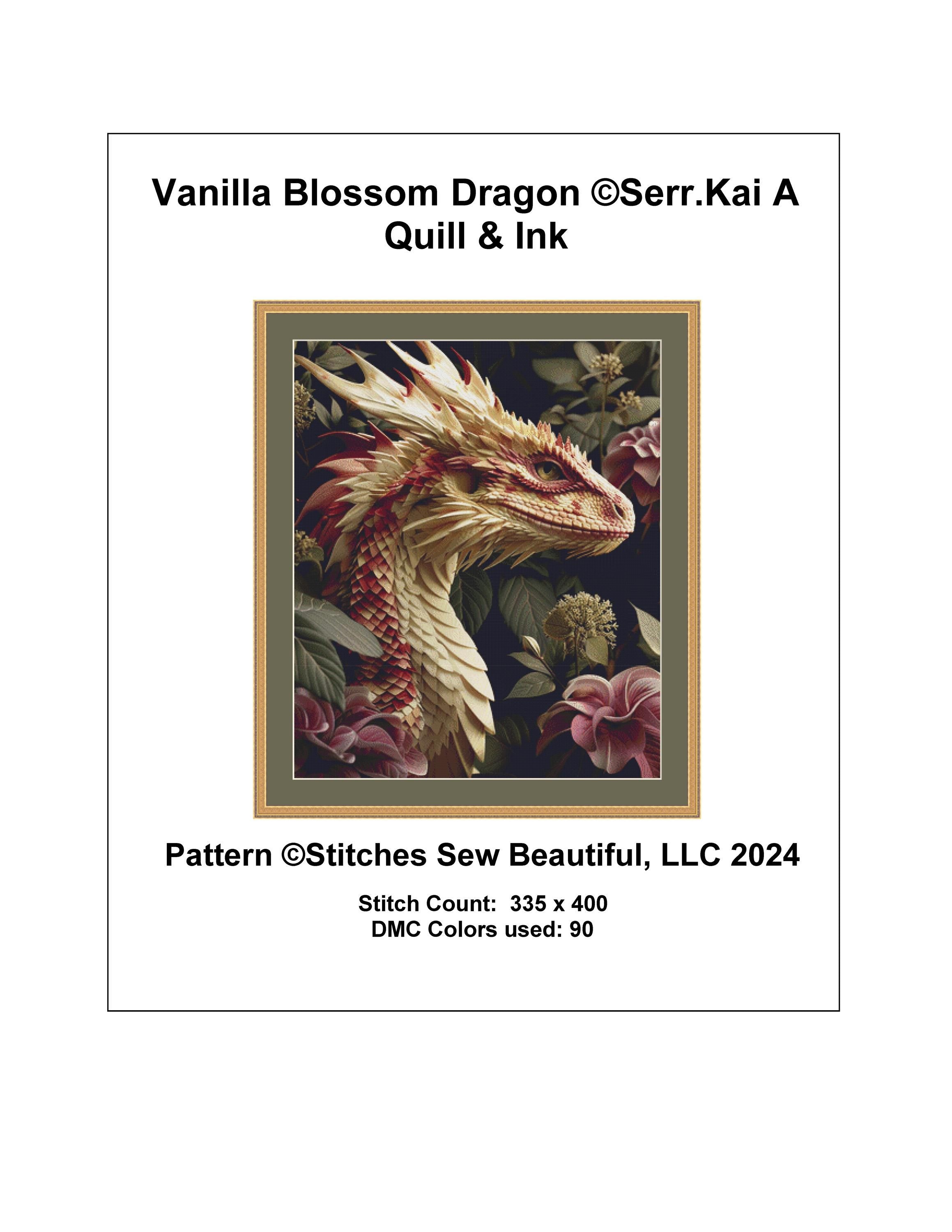 Vanilla Blossom Dragon counted cross stitch pattern by Serr.Kai A Quill & Ink