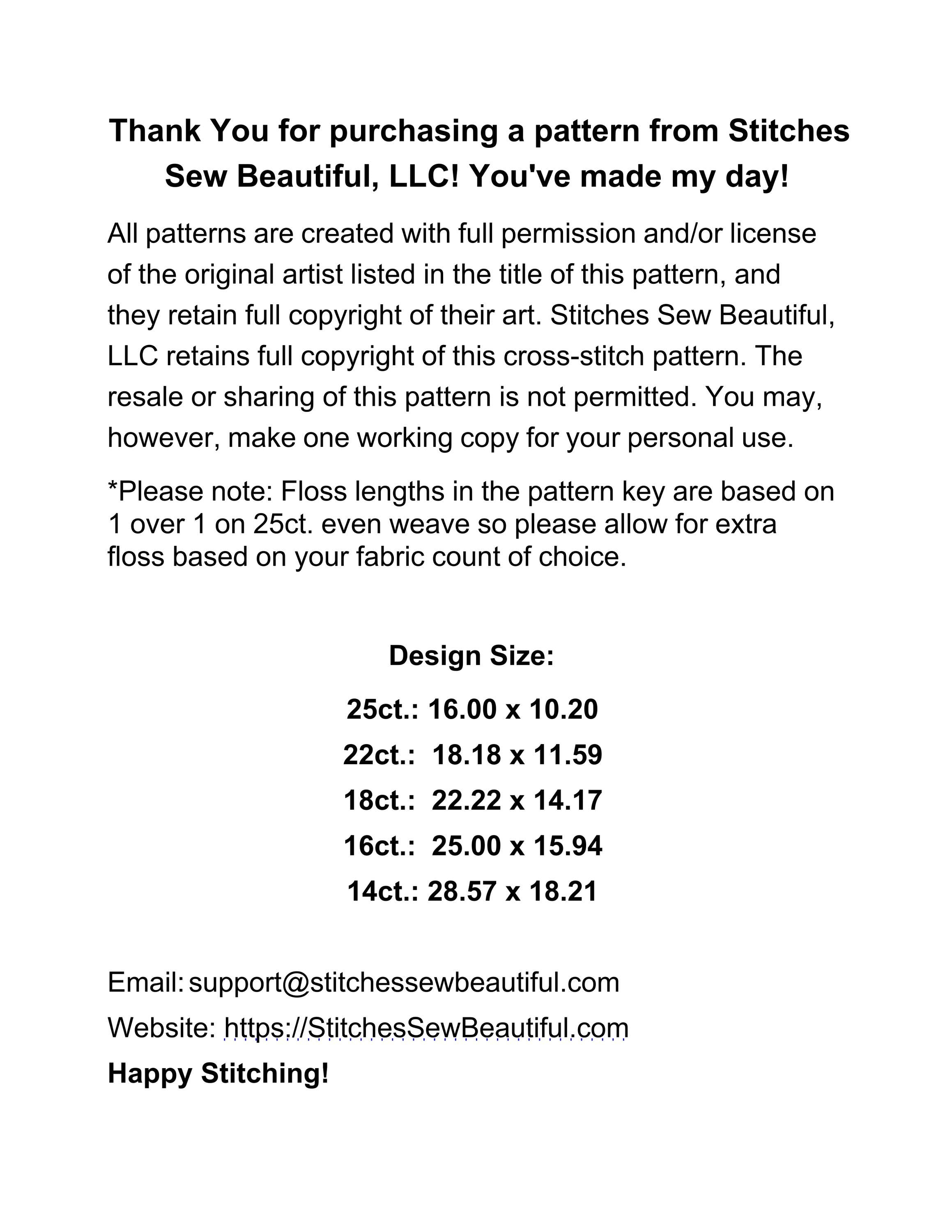 This chart has been tested and verified to work with Pattern Keeper by the designer. Not affiliated with Pattern Keeper.